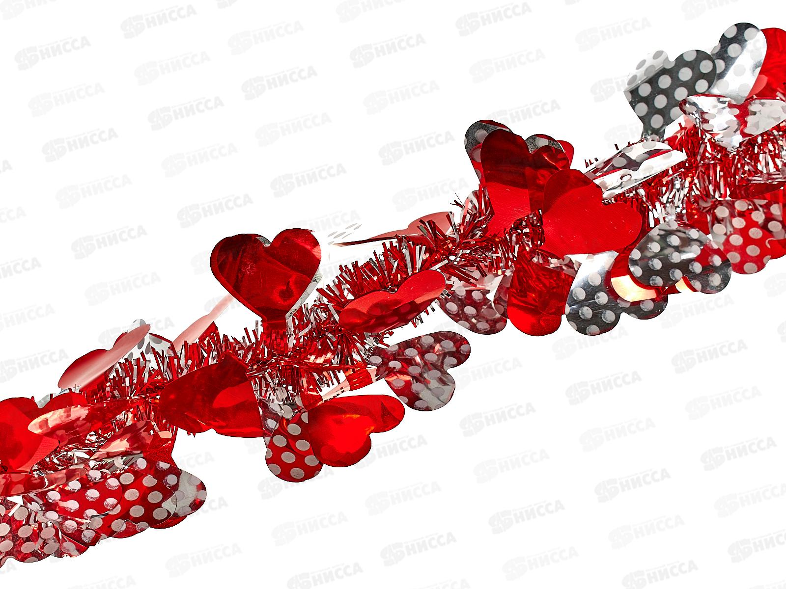 Мишура 002015 8см х 2м, AL-8020, красный-серебро с сердечками*500