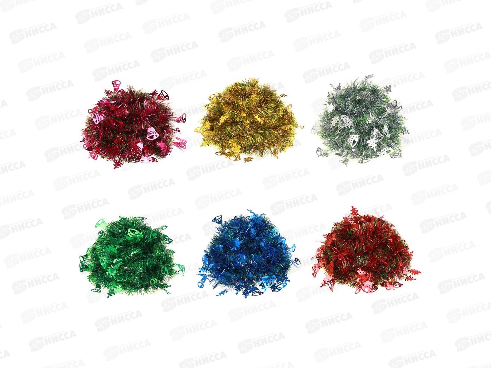 Мишура 2м с декором "Елочки Колокольчики" 6 цветов 377-606 г *12