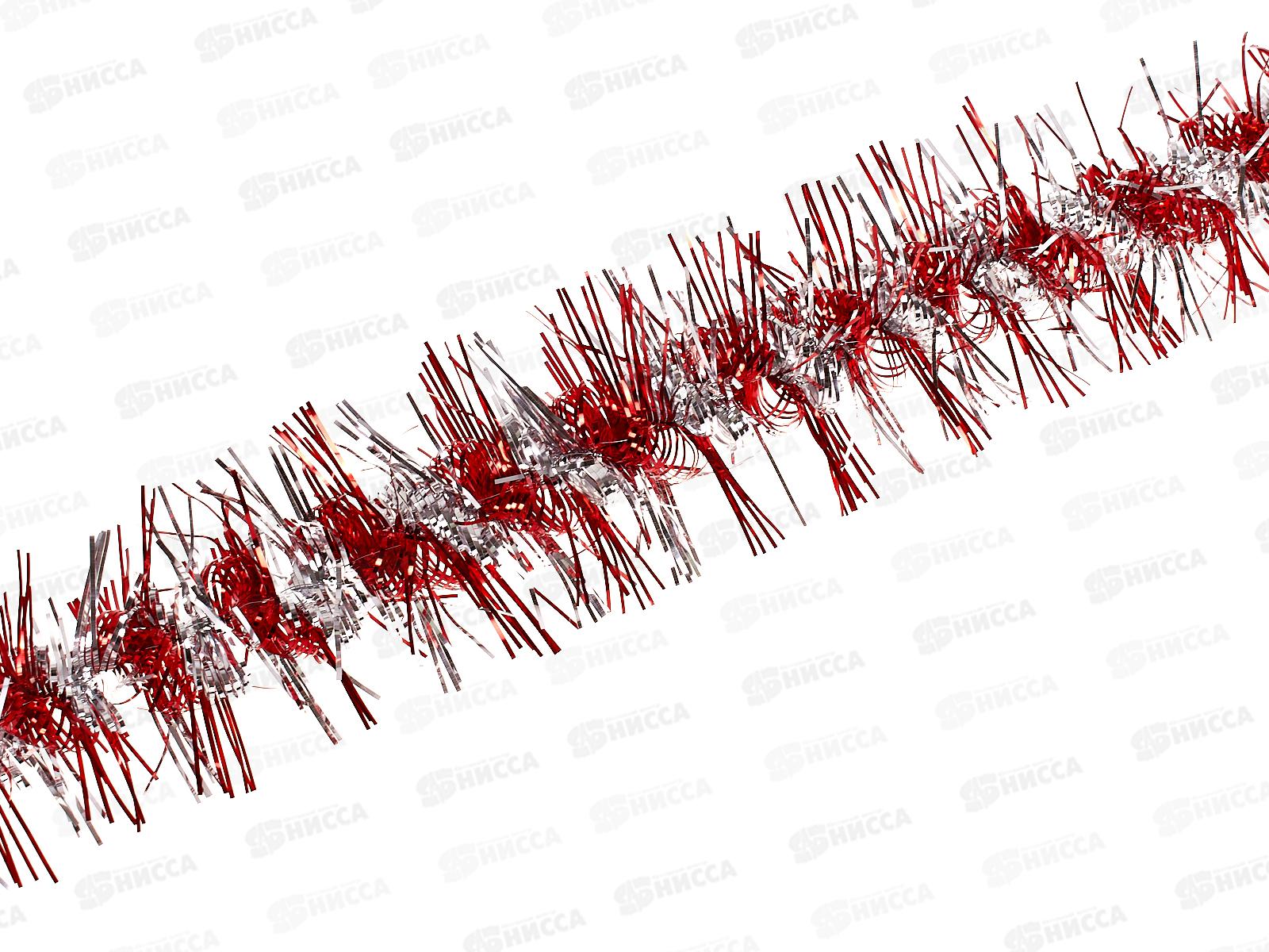 Мишура 002015 крученая с цветным кончиком люкс 9смх2м.красный-серебро AL-3342,*800
