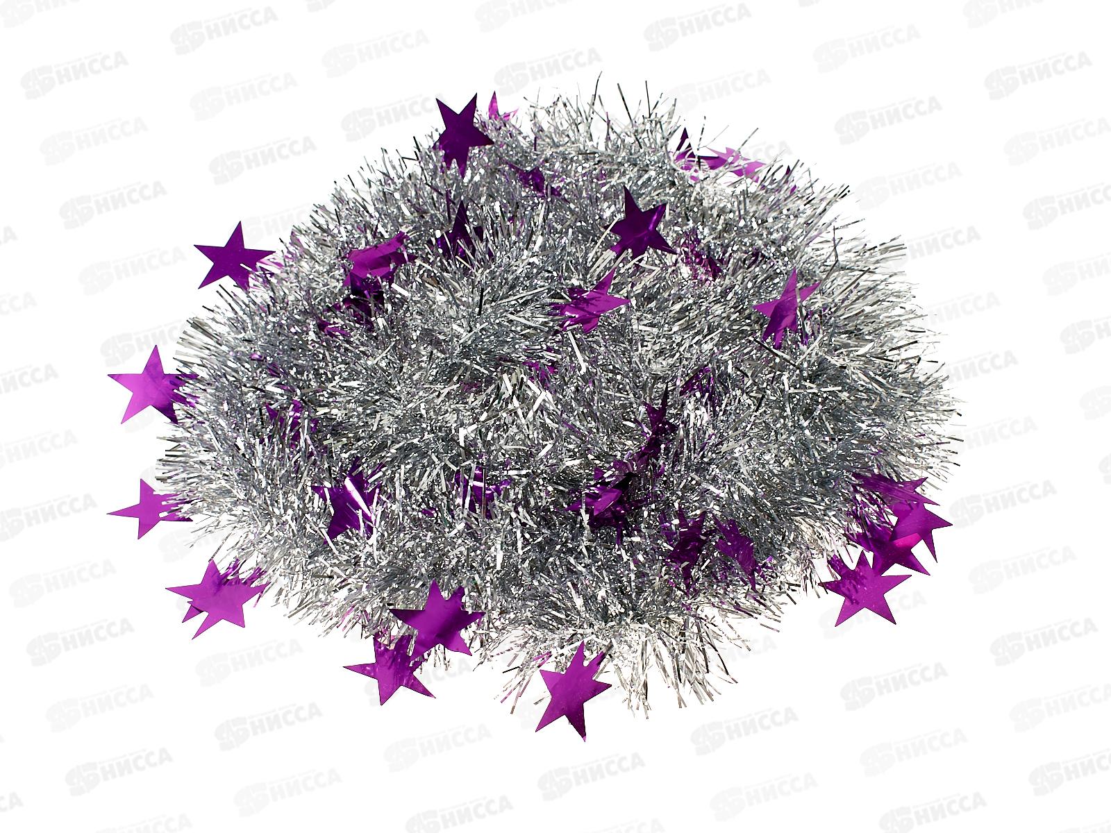 Мишура 002015 звездочки элементы 9смх2м.фиолет.+серебро, AL-3352, *360