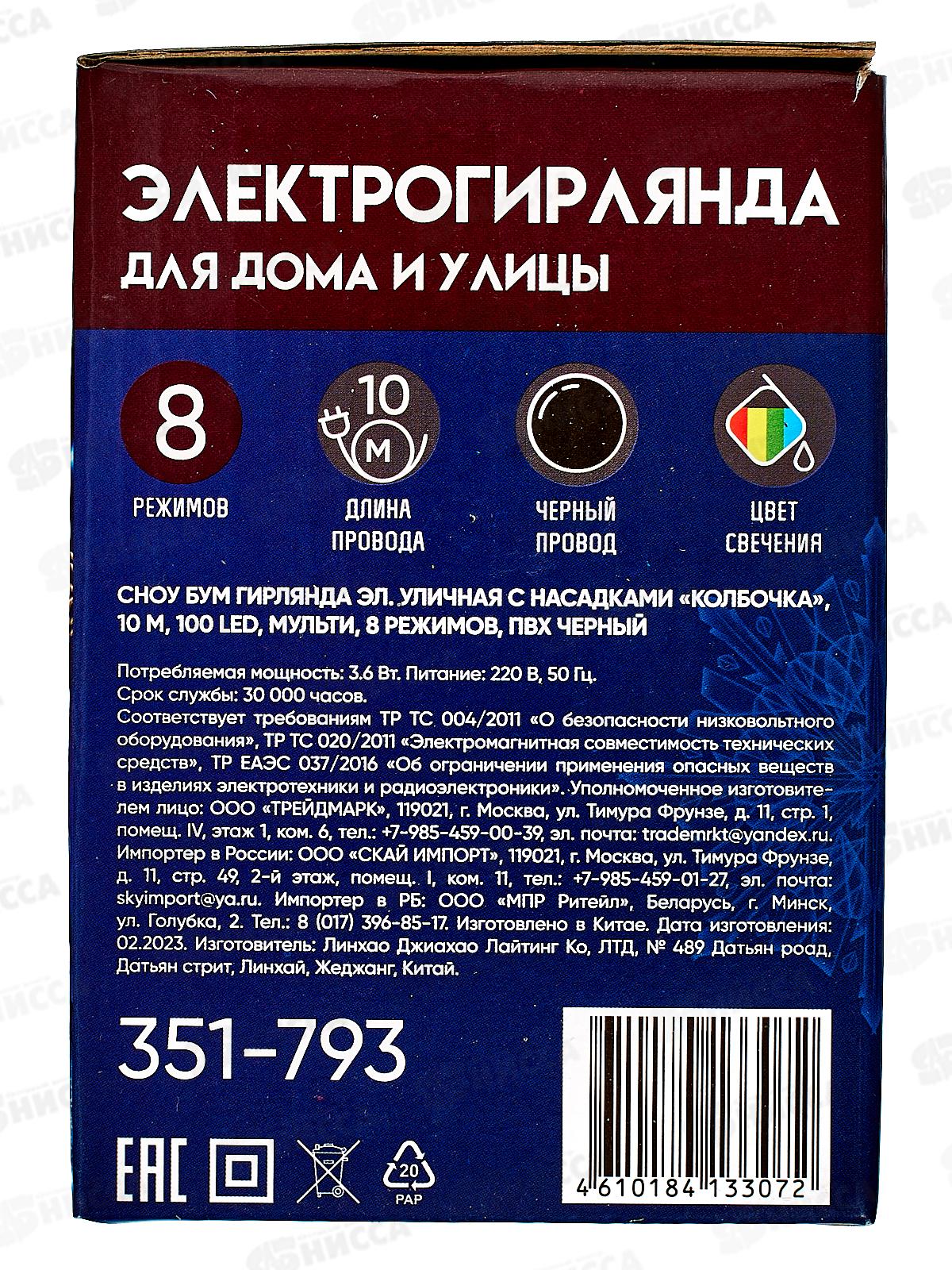 Гирлянда 10м Колбочка 100LED уличная 8реж мульти 351-793 г