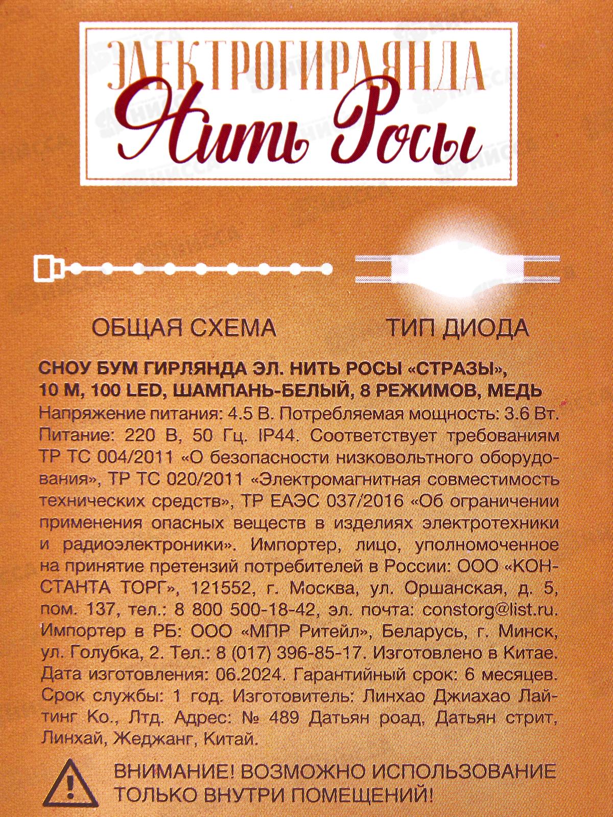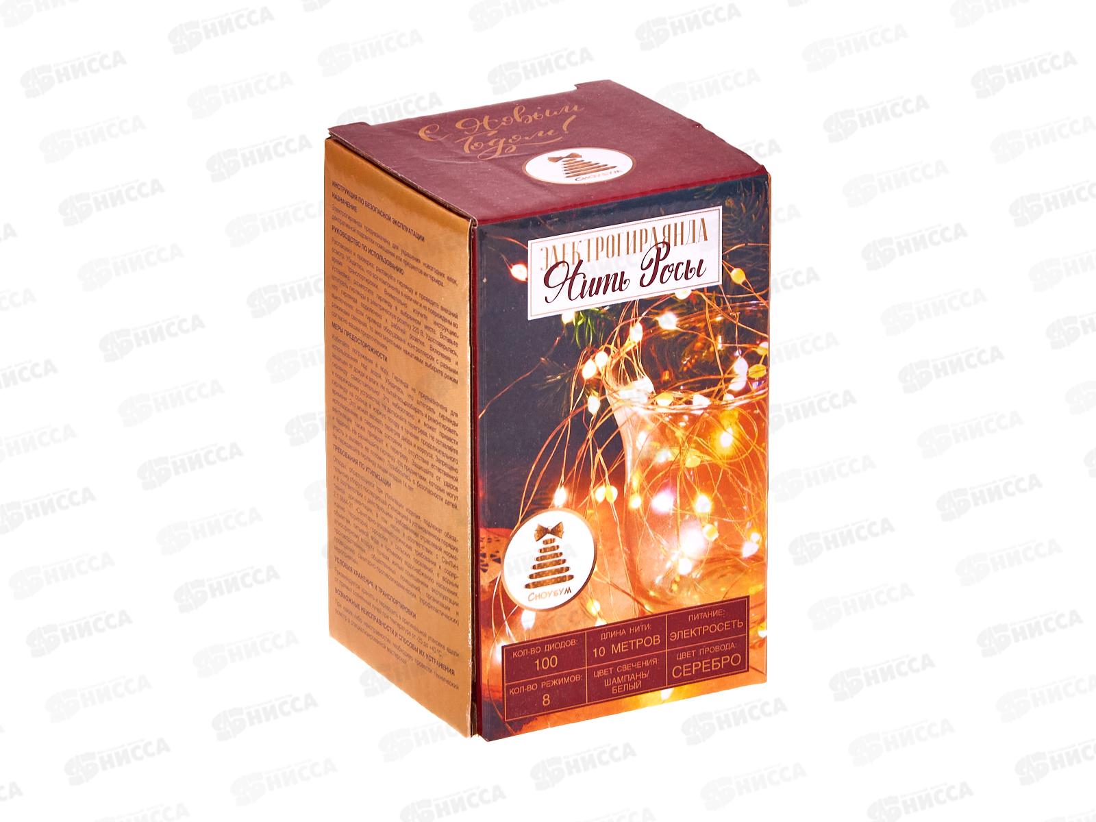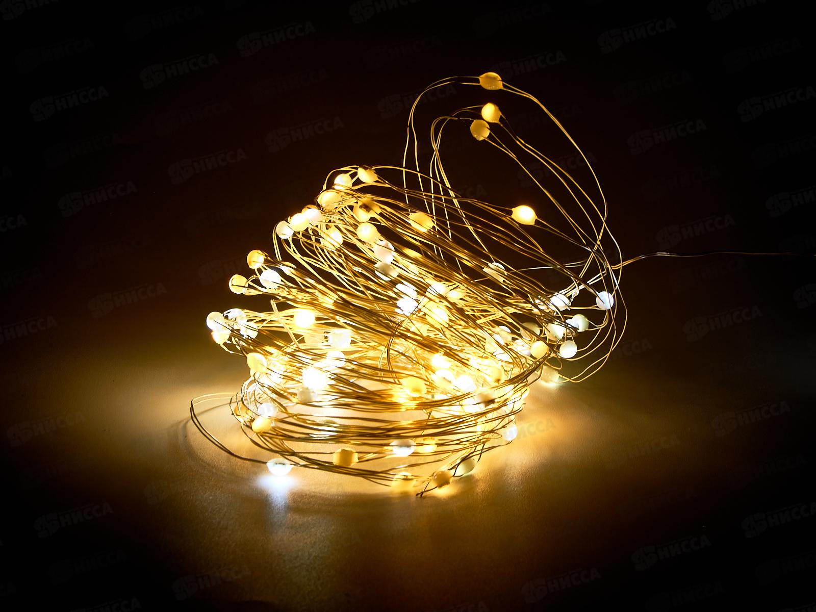 Гирлянда 10м "Стразы" эл. нить росы 100LED шампань-белый 8 реж. 381-326