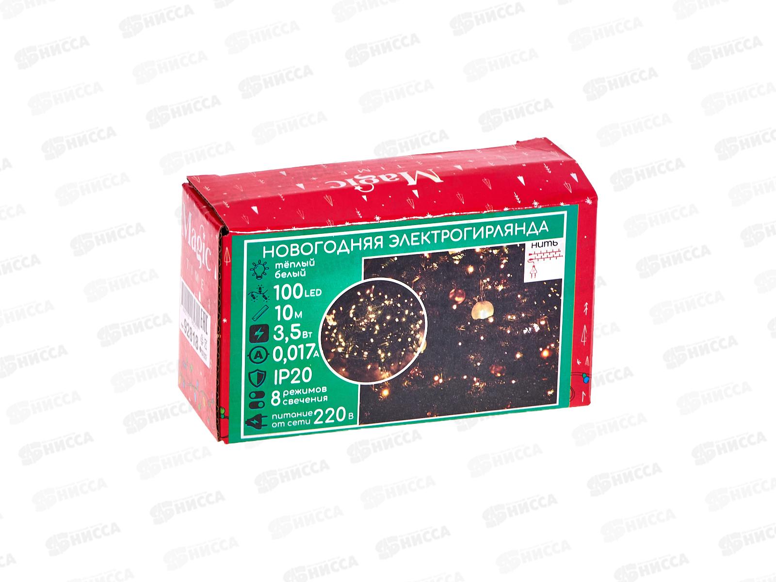 Гирлянда 10м 100LED, теплый белый, 8 режимов, 92818