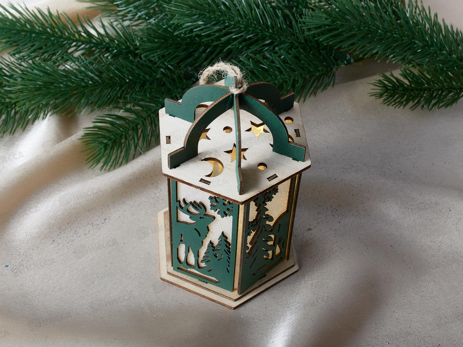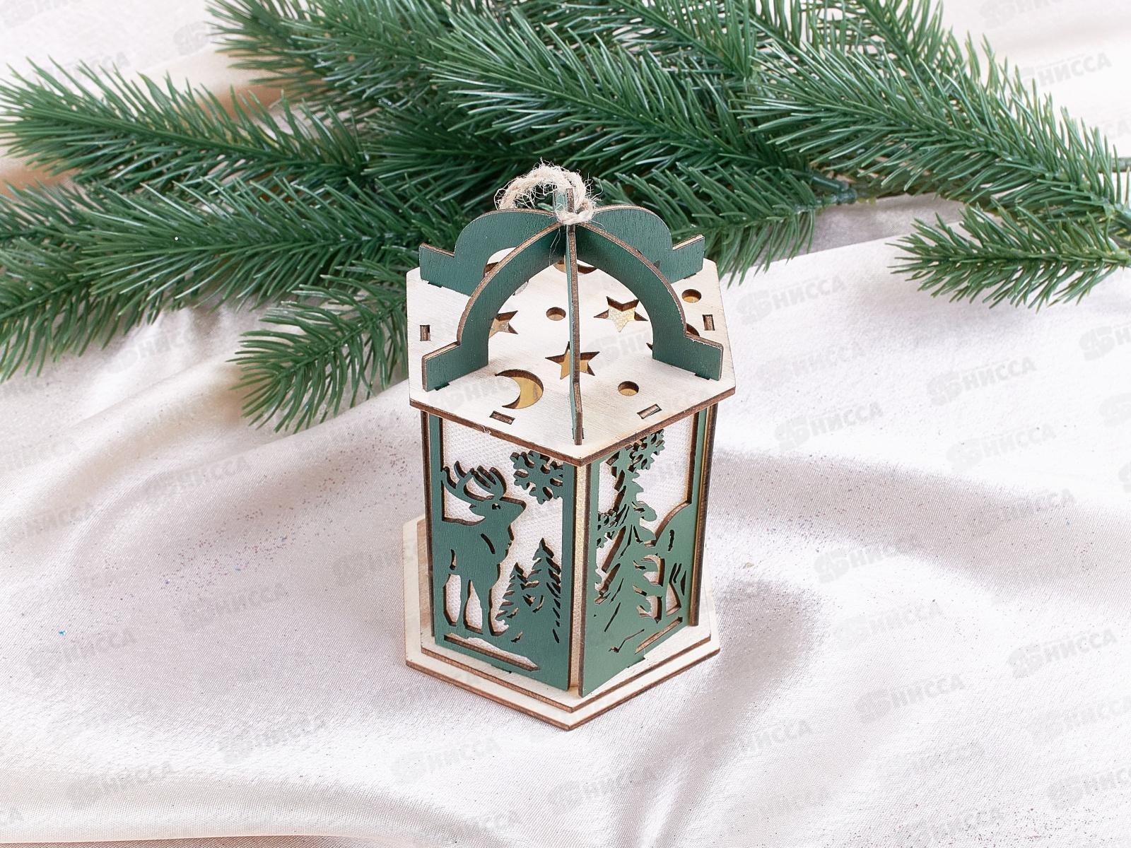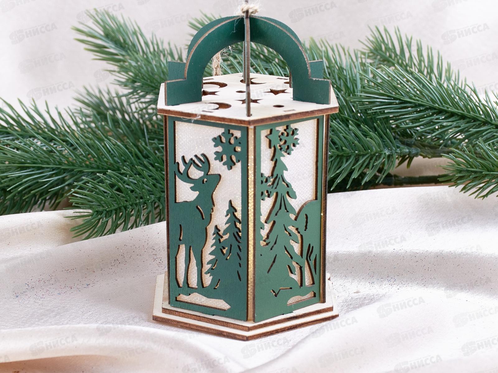 Подвеска "Фонарь с олененком" 13*9 т/белый световой 6117305