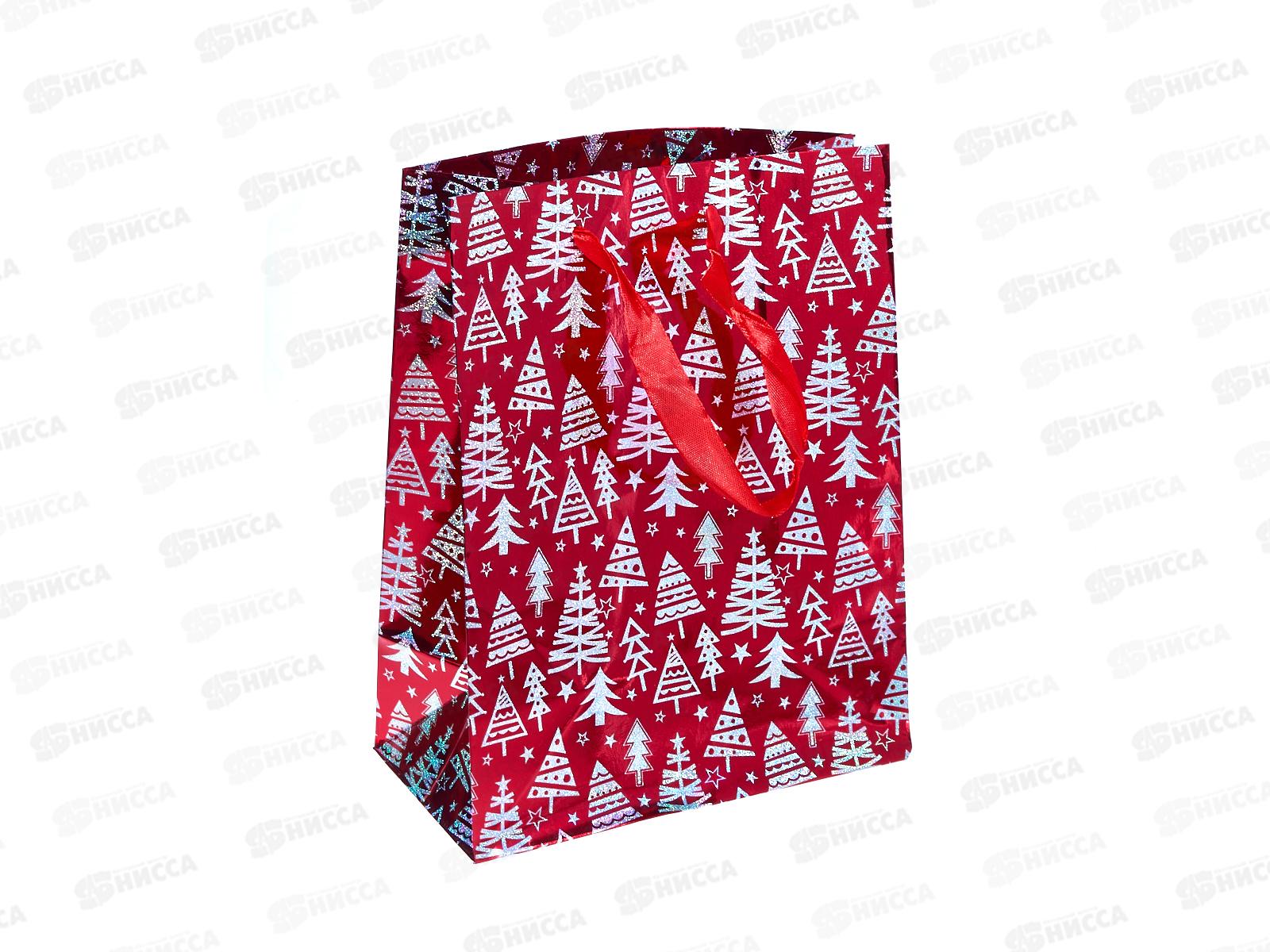 Пакет подарочный г/ф 18*23 красный Елочки Р725-4 *12
