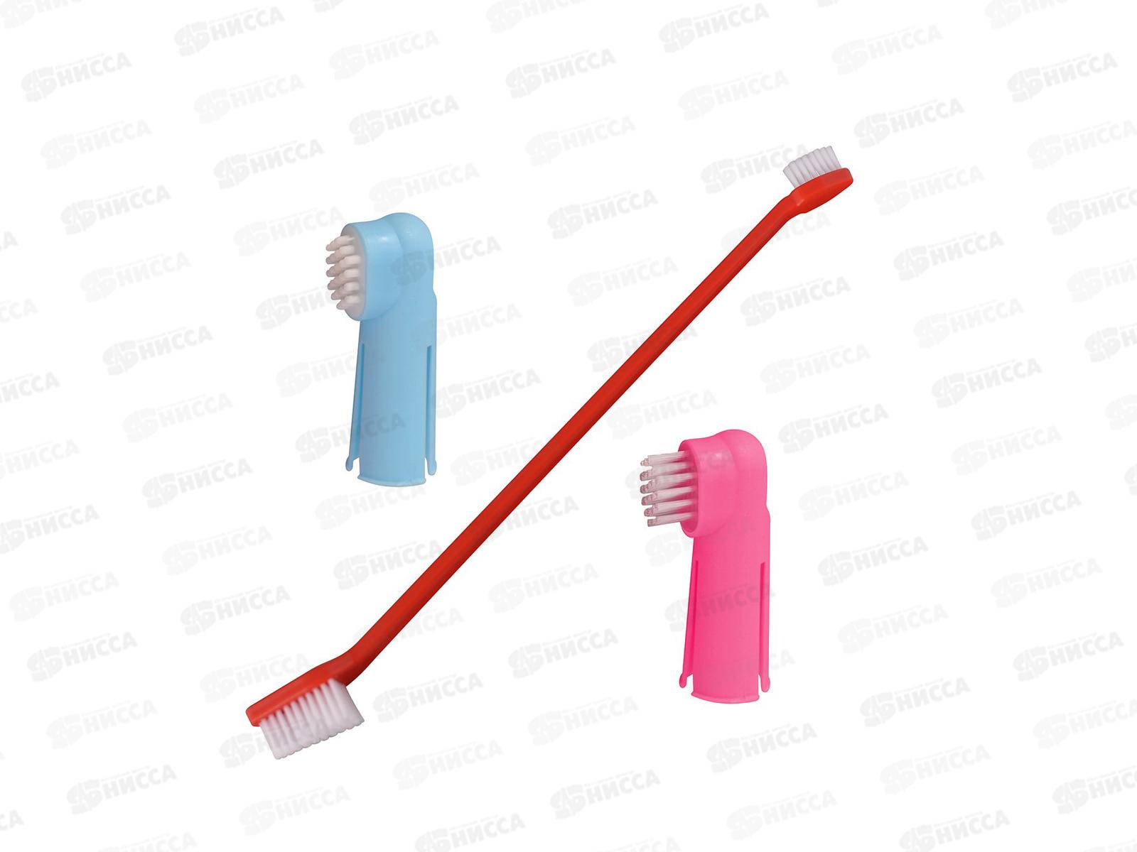 Универсальный набор предназначен для чистки зубов домашних животных. В набор входит двухсторонняя щетка и две щетки-напальчник с разными видами щетины. Двухсторонняя зубная щетка упрощает процесс очистки различных областей и труднодоступных мест пасти вашего питомца. Напальчник сделан из мягкого материала с прорезями, который не повредит ваши пальцы. С помощью такого набора вы сможете уменьшить нарастание зубного камня и зубного налета, очистить зубы, уничтожить болезнетворные бактерии, убрать неприятный запах из пасти. Подходит для собак любого размера. Перед первым и после каждого использования помыть мыльным раствором, сполоснуть проточной водой, посушить.
