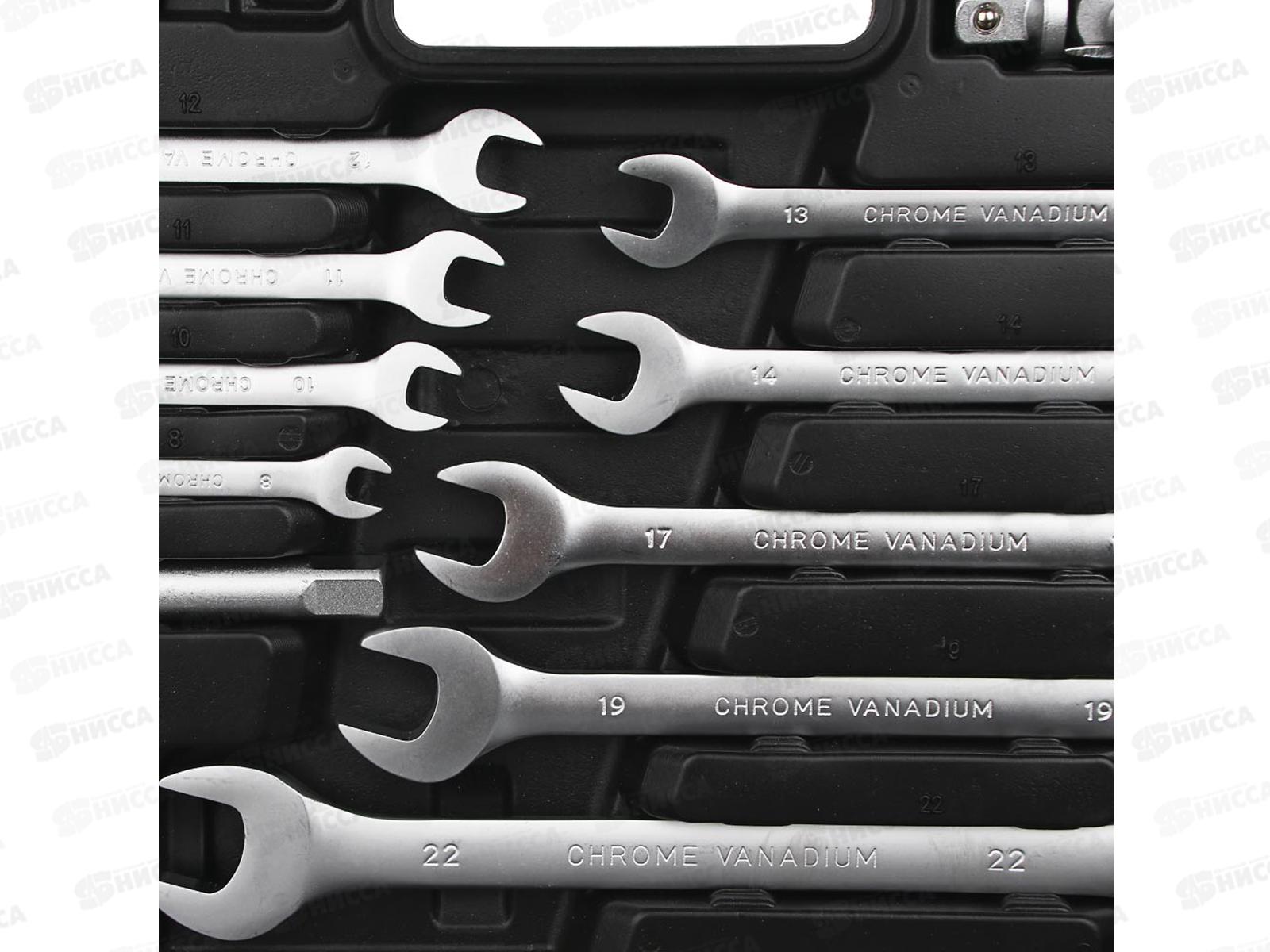 Вес в упаковке; 5,7 кг. Размер упаковки: 27x37x8 см. Комплектация: адаптер 1/4", битодержатель 1/2", бокс, переходник 1/2"-3/8", вороток т-образный 1/4", гибкий удлинитель 1/4", карданный шарнир 1/2", карданный шарнир 1/4", ключ трещеточный с быстрым сбросом 1/2", ключ трещеточный с быстрым сбросом 1/4", удлинители 100 и 50 мм 1/4"- 2 шт, удлинитель 120 и 250 мм 1/2"- 2 шт, биты 5/16" (15 шт.): Нех:8-10-12-14 мм, SL:8-10-12 мм, PH:3-4 мм, TORX:40-45-50-55 мм, PZ:3-4 мм, головки свечные 1/2" 16 и 21 мм - 2 шт, головки торцевые 1/2":14-15-16-17-18-19-20-21-24-27-30-32 - 12 шт, головки торцевые 1/4":4-4,5-5-5,5-6-7-8-9-10-11-12-13-14 мм - 13 шт, ключи комбинированные: 8х8,10х10,11х11,12х12,13х13,14х14,17х17,19х19,22х22 - 9 шт, отвертка с присоединительным квадратом 1/4" отверточные торцевые головки 1/4": Нех:3-4-5-6 мм, SL:4-5.5-7 мм, РН:1-2 мм, Torx:Т40-Т30-Т25-Т15-Т10 мм, PZ:1-2 мм - 17 шт.