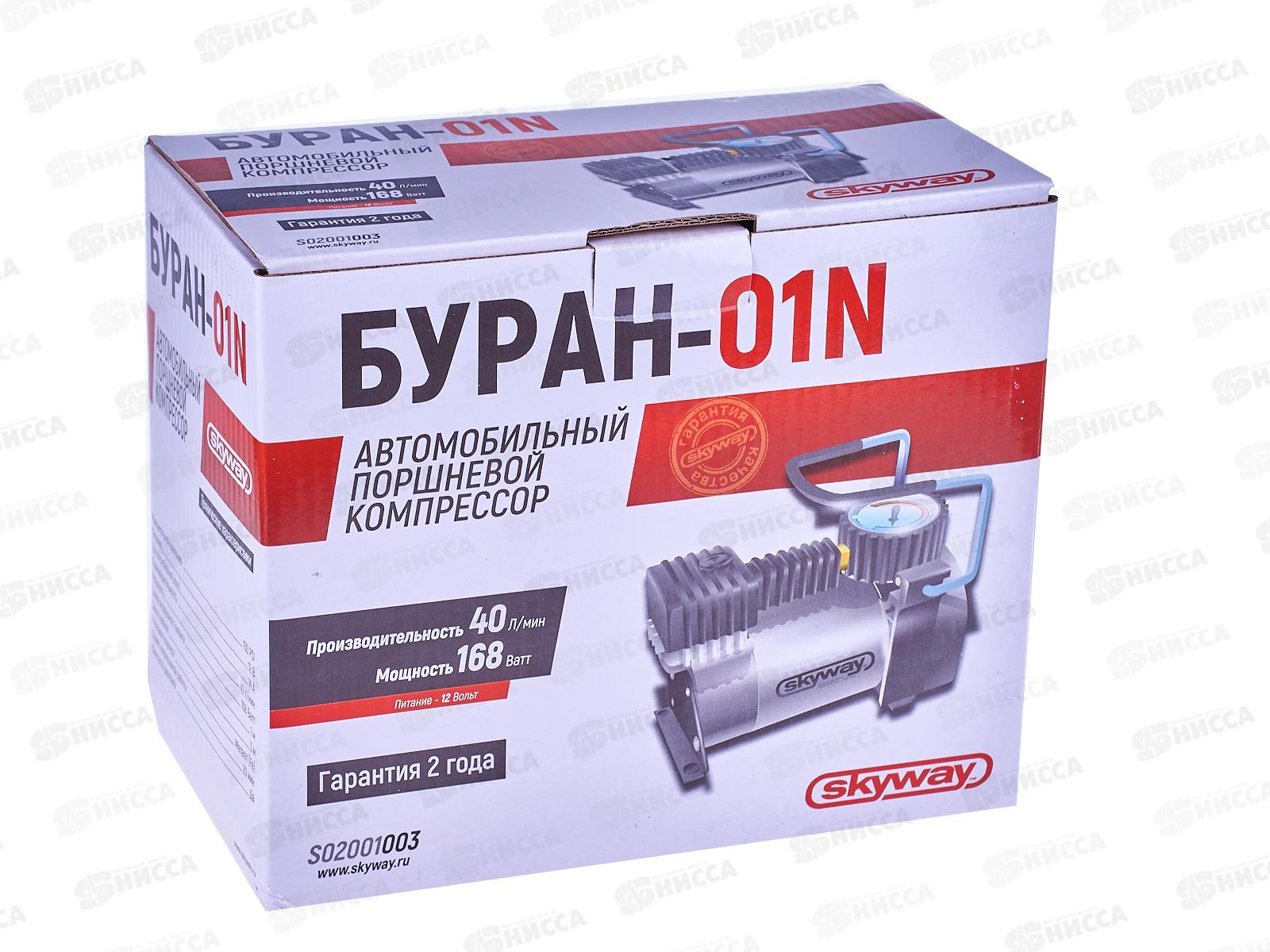 Компрессор автомобильный металлический 40л/мин в прикуриватель SKYWAY БУРАН-01N Малые габариты, сумка, фиксатор давления, 10атм, S