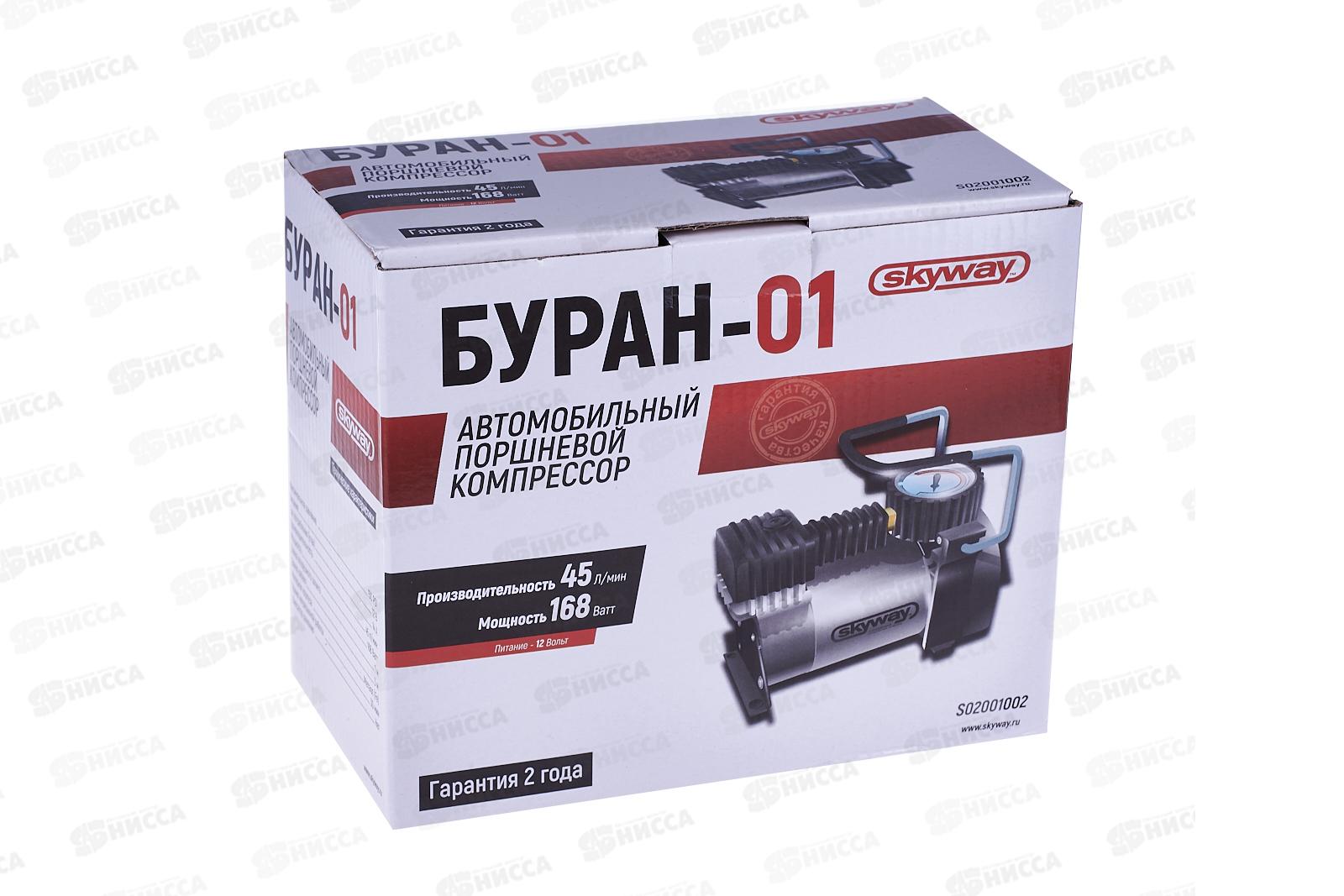 Компрессор автомобильный металлический 45л/мин в прикуриватель SKYWAY БУРАН-01 Малые габариты, сумка, 10атм, S02001002