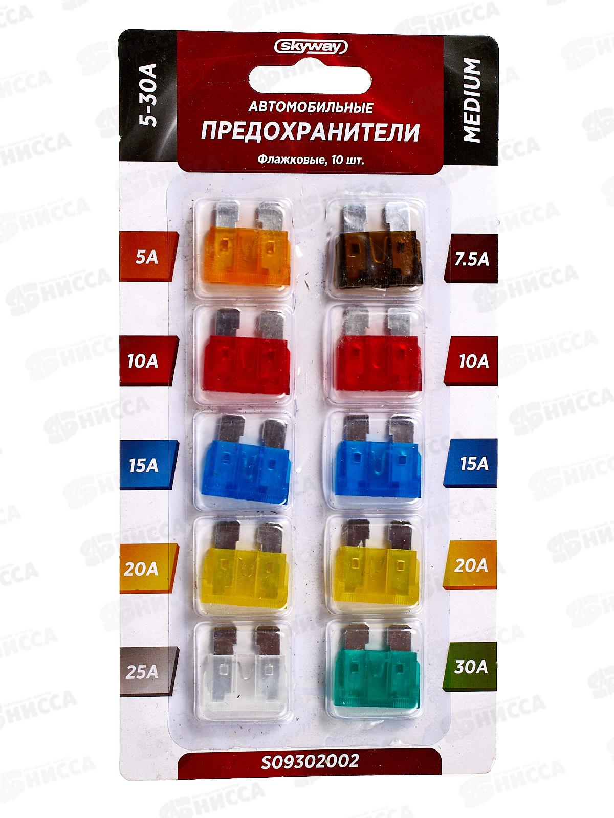 Предохранитель флажковый MEDIUM набор 10шт 5-30А блистер SKYWAY, S09302002