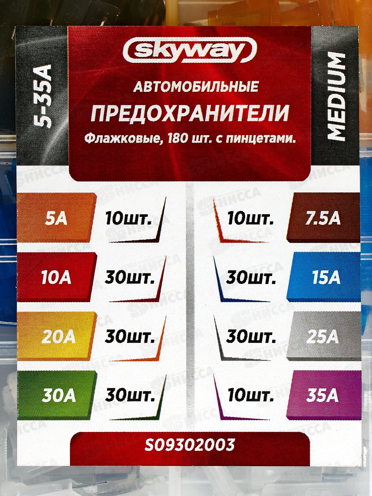 Предохранитель флажковый MEDIUM набор 180шт 5-35А в пластиковой коробке SKYWAY, S09302003