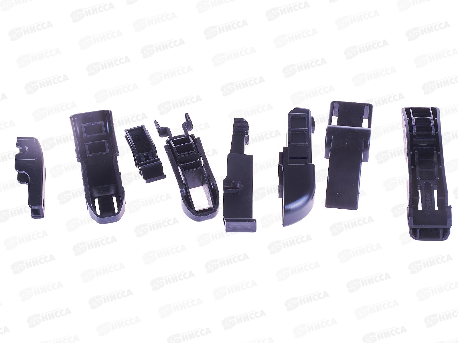 Щетка стеклоочистителя бескаркасная ТМ SKYWAY с 9 адаптерами. Щетки подходят для любого автомобиля и обеспечивают равномерное очищение всей поверхности лобового стекла. Щетки технологически усовершенствованны, и удаляют даже самые маленькие частицы пыли и воды. Натуральный каучук, графитовое напыление, которые использованы в производстве щеток, позволяют значительно снизить уровень шума и увеличить срок службы. Под воздействием температурных изменений резина щетки остается эластичной(и даже при контакте с реагентами). Щетка плотно прилегает к поверхности стекла.