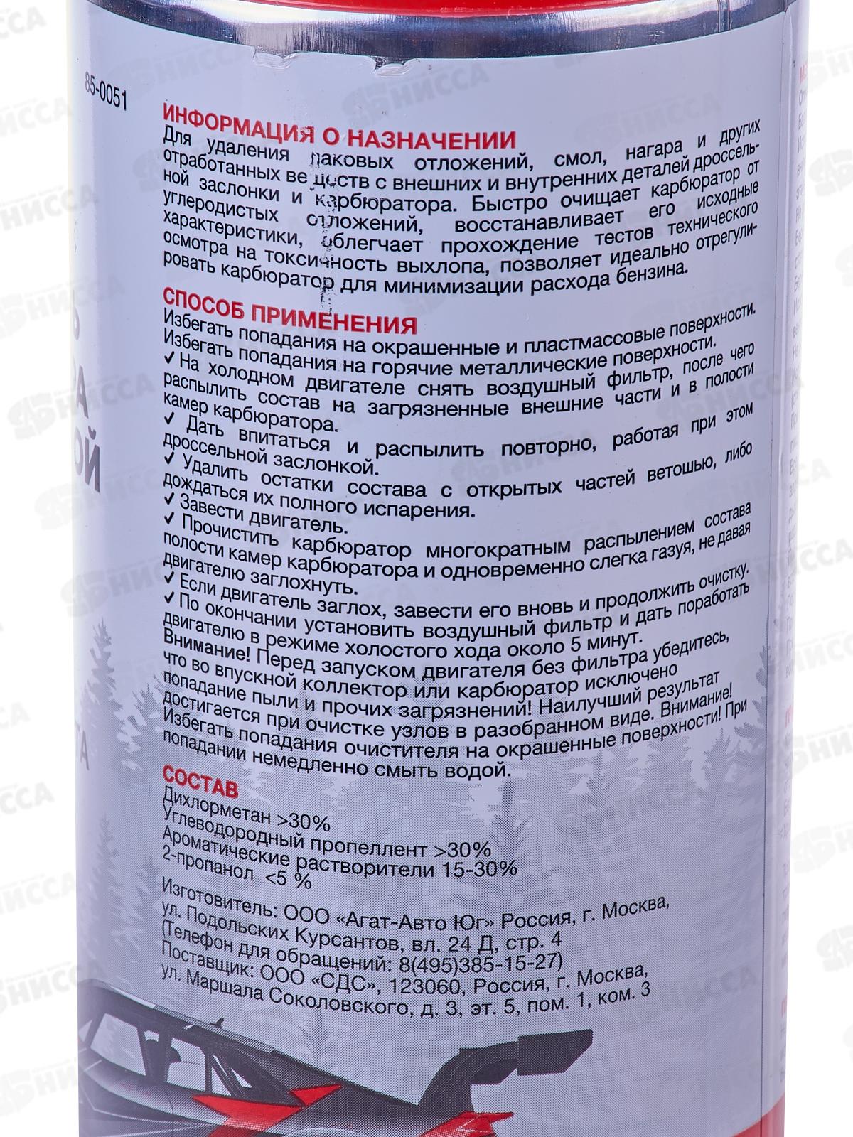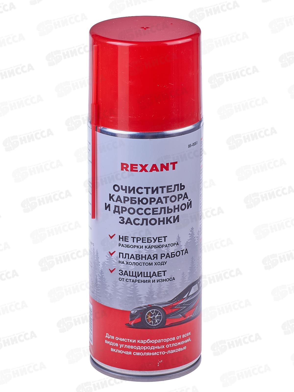 Очиститель карбюратора REXANT 520 мл аэрозоль 85-0051 быстро, эффективно и без трудоемкого демонтажа позволяет очистить карбюратор от всех видов углеводородных отложений (нагар, смолы, масляную пленку и т. п.), накапливающихся в процессе эксплуатации автомобиля. Очищает топливные камеры, игольчатый клапан, жиклеры, восстанавливает подвижность оси воздушной заслонки. Стабилизирует работу двигателя. Применяется также для очистки дроссельной заслонки инжекторных двигателей. Незаменимое средство для очистки клапана вентиляции картерных газов.