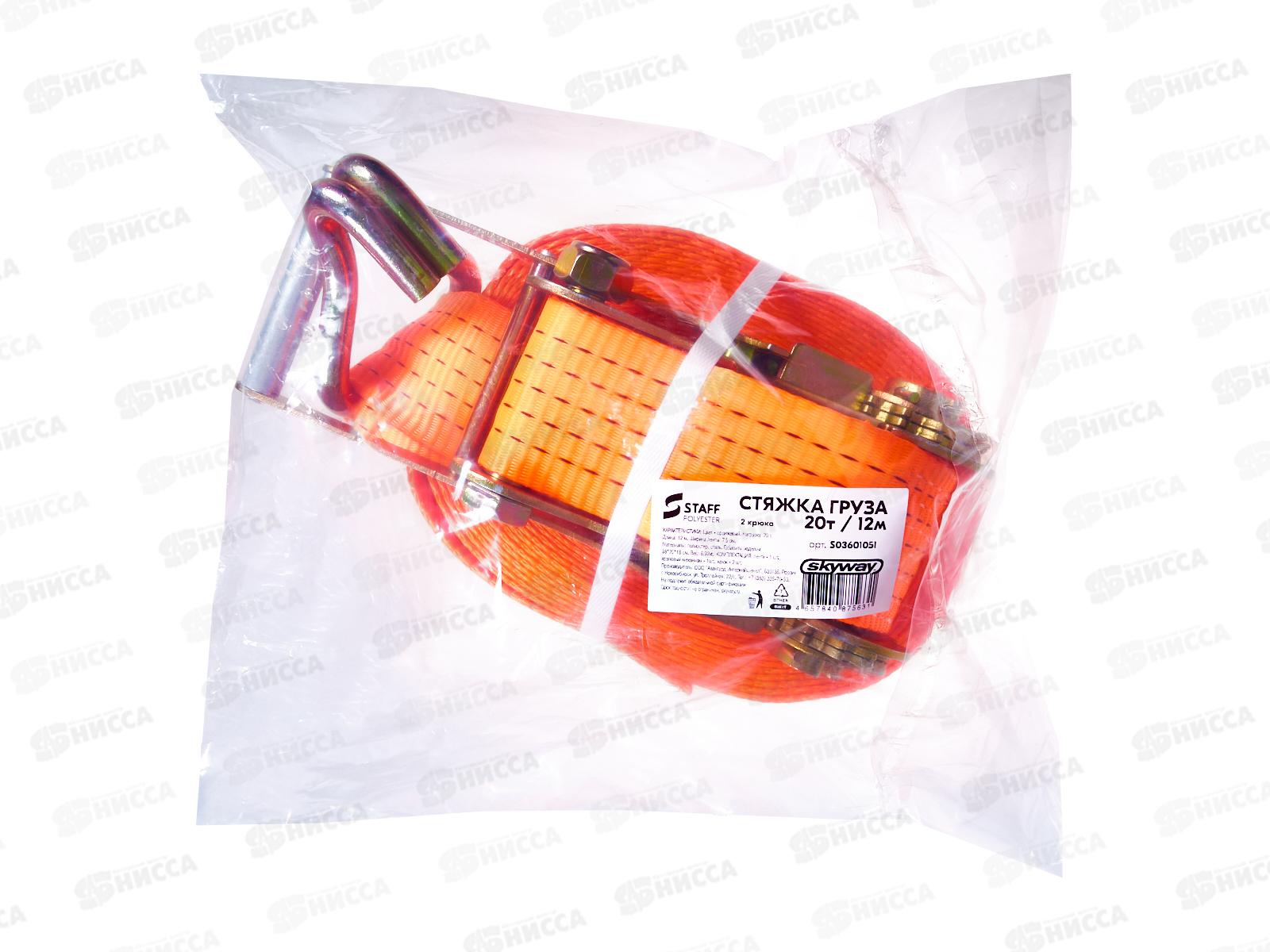 Стяжка груза 20,0т 12,0м SKYWAY STAFF 80мм оранжевый храповый механизм с крюками полиэстер