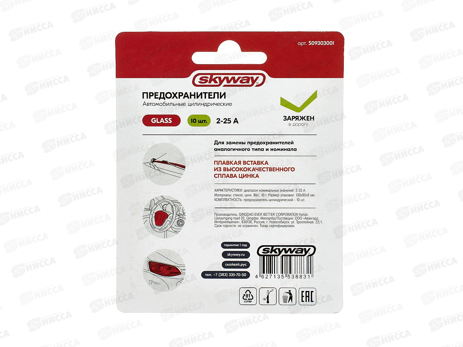 Предохранитель цилиндрический стеклянный набор 2-25А 10шт блистер SKYWAY