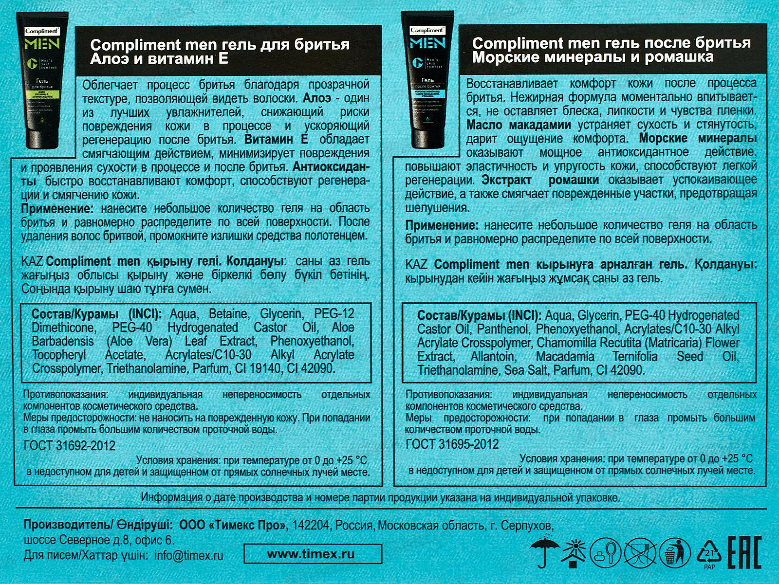 КОМПЛИМЕНТ Подарочный Набор men №1990 Заряд бодрости гель для бритья+ гель после бритья *8