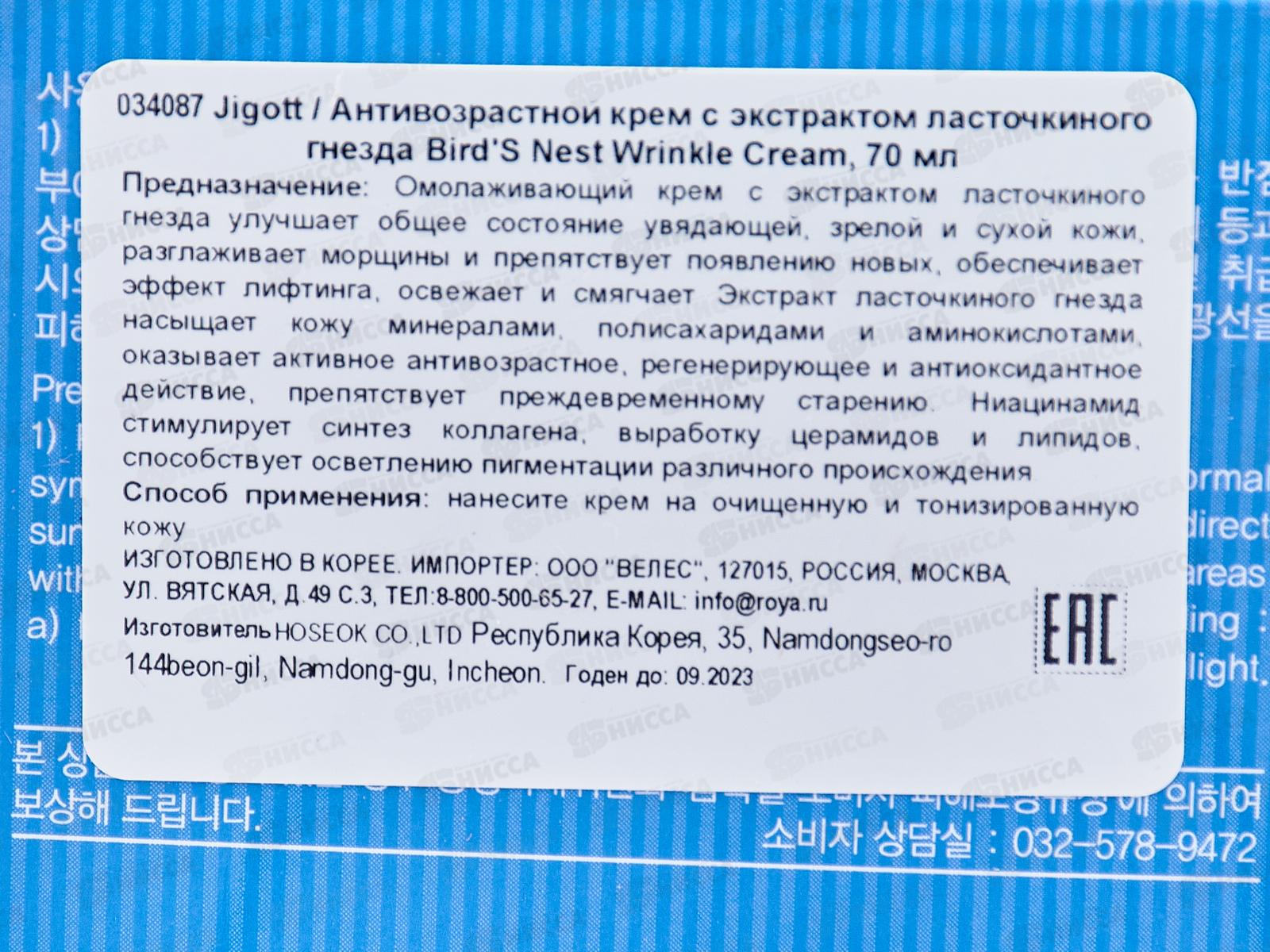JIGOTT Антивозрастной крем с экстракт ласточкиного гнезда 70мл 34087
