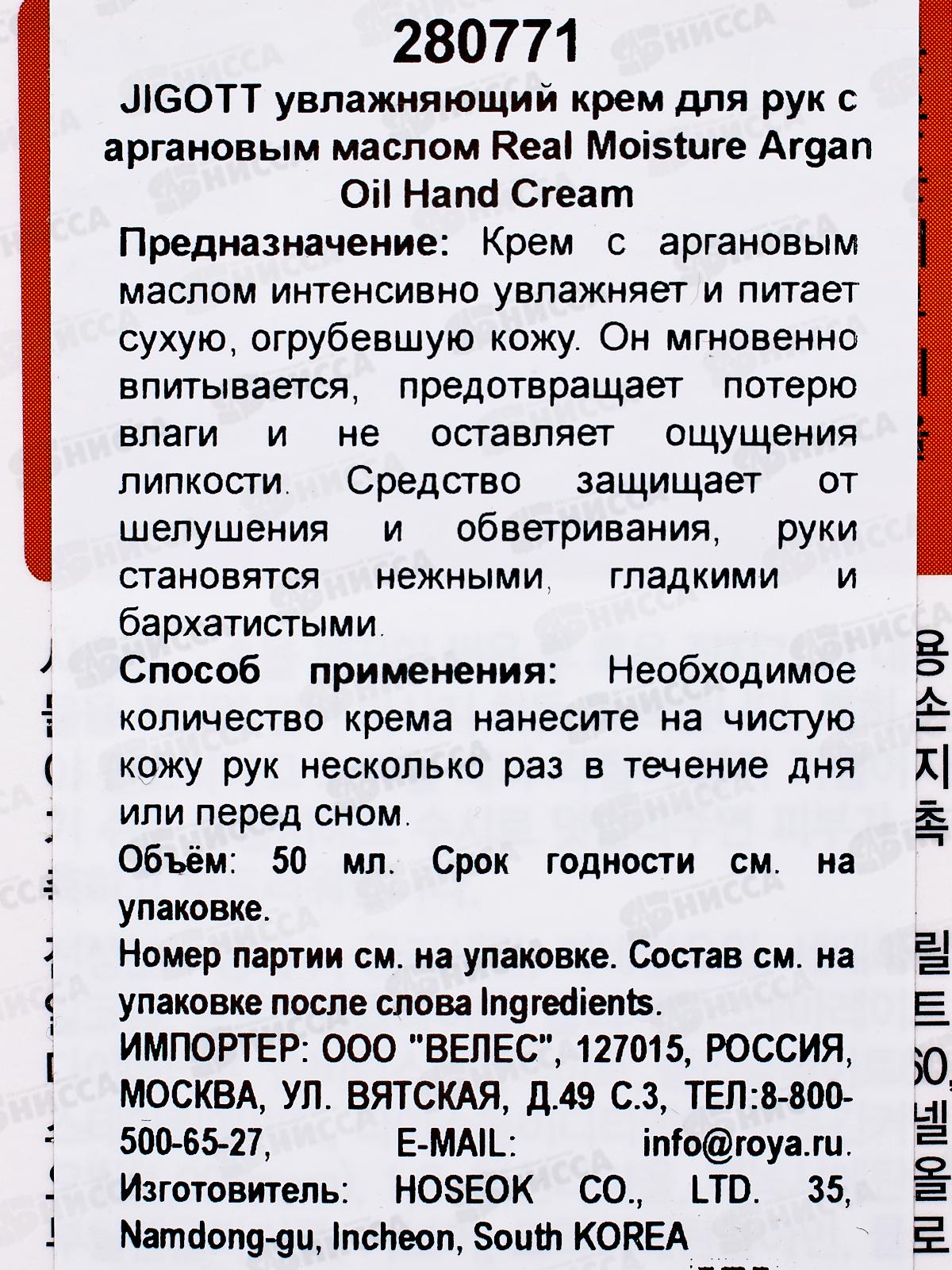 JIGOTT Увлажняющий крем для рук с аргановым маслом 100мл *100 80771