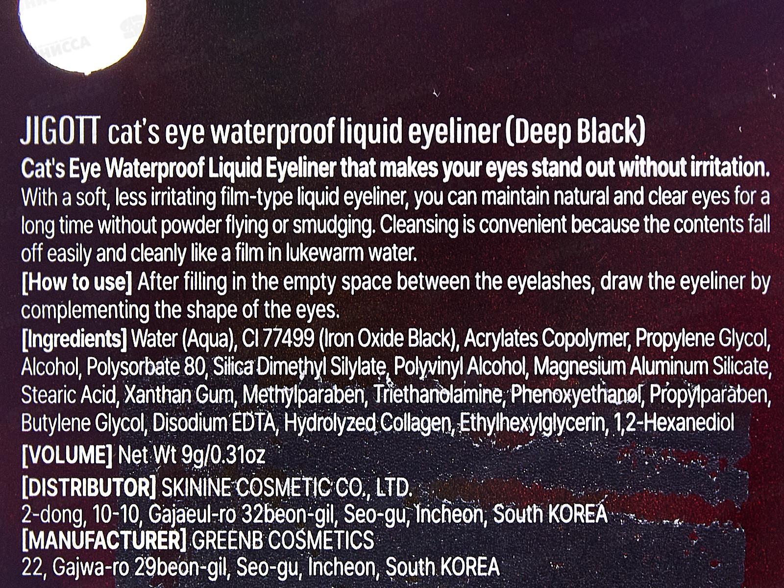 JIGOTT Подводка-лайнер д/глаз Cats Eye черный 9гр *20