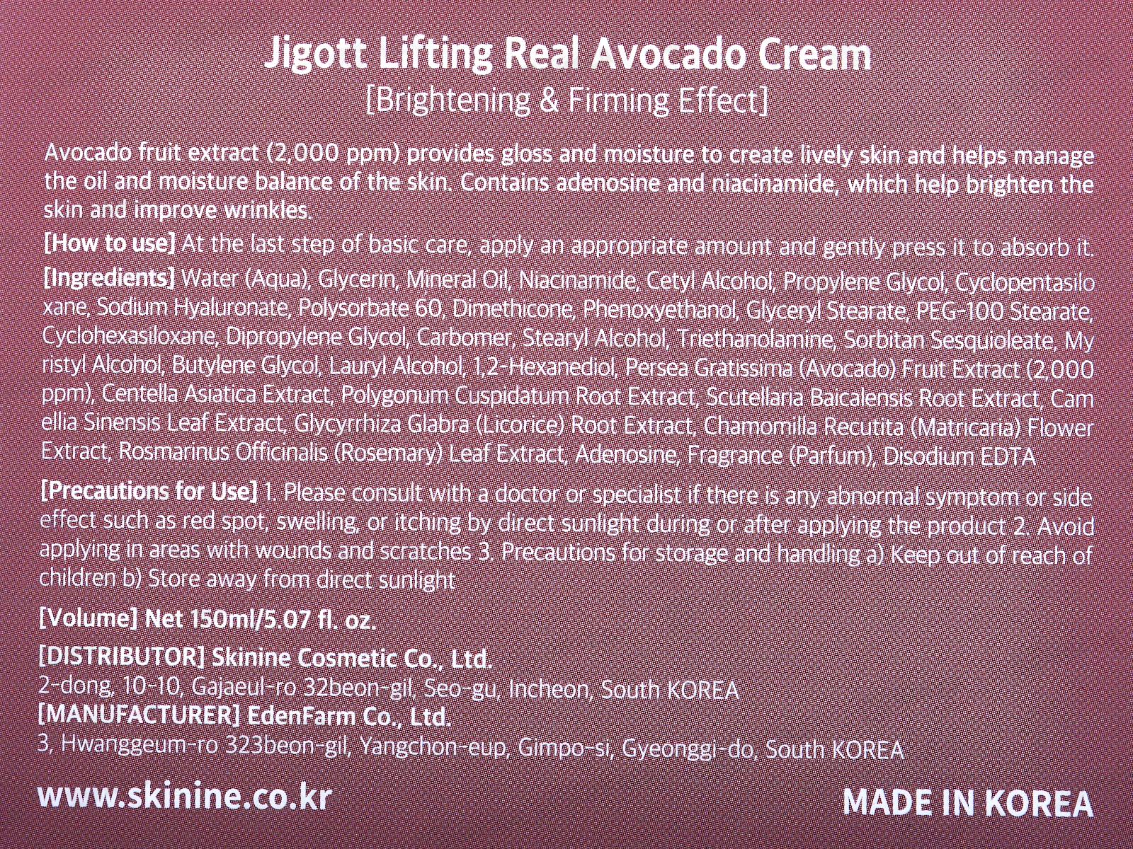 JIGOTT L.R. Крем для лица увлаж экстракт Авокадо 150мл *75