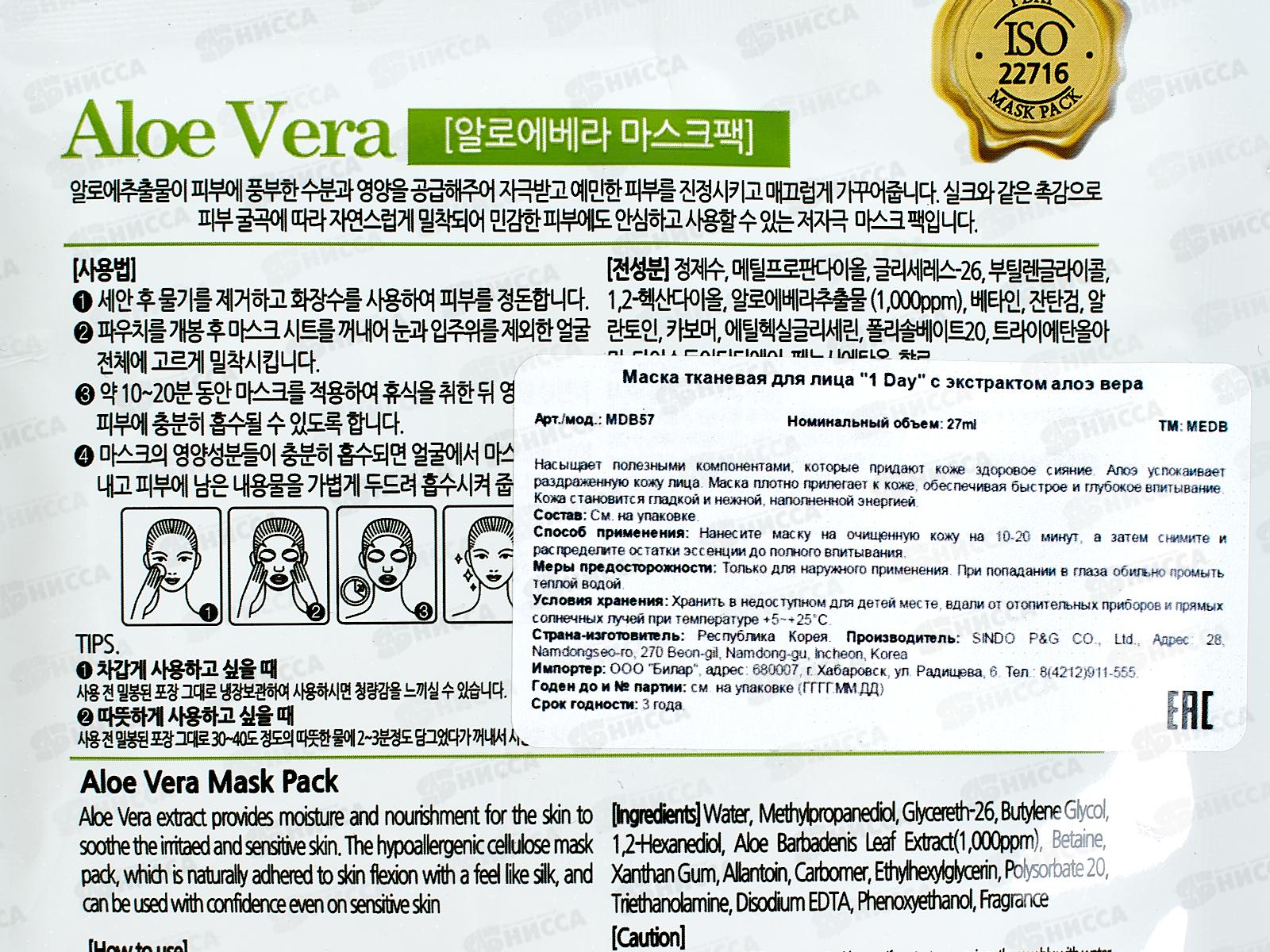 MEDB 1 Day маска для лица ткан 27мл С Экстракт Алоэ успок *600