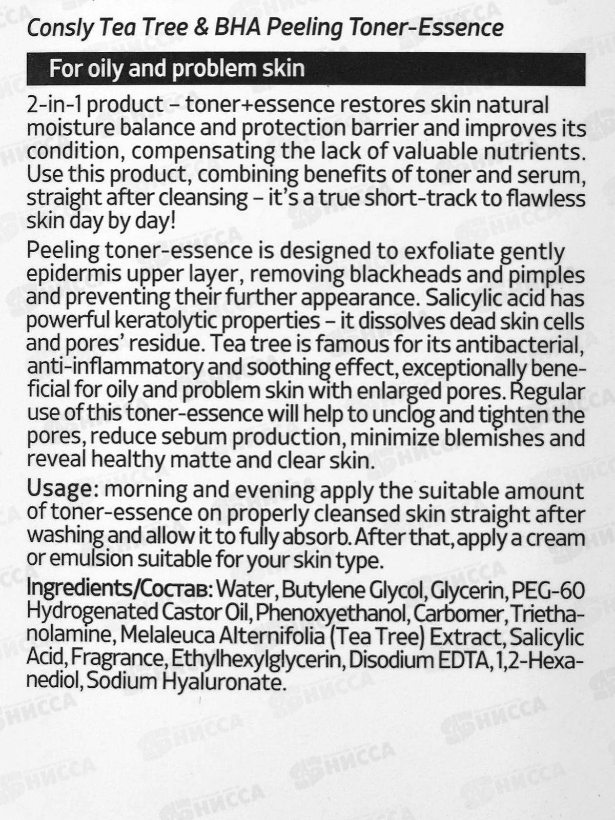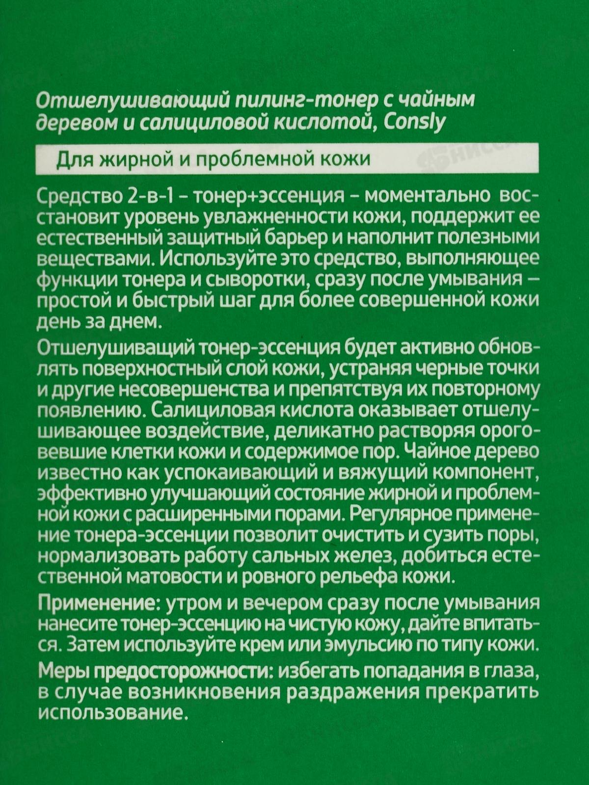 Consly Пилинг-тонер Отшелуш с чайным дер и салиц кислотой 200мл
