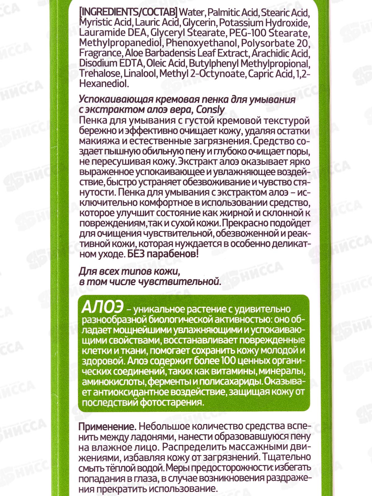 Consly Пенка для умывания Успокаивающая кремовая с экстракт Алоэ 100мл