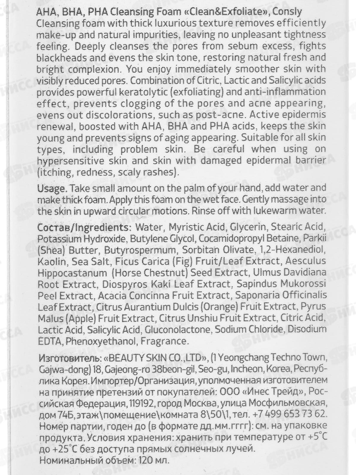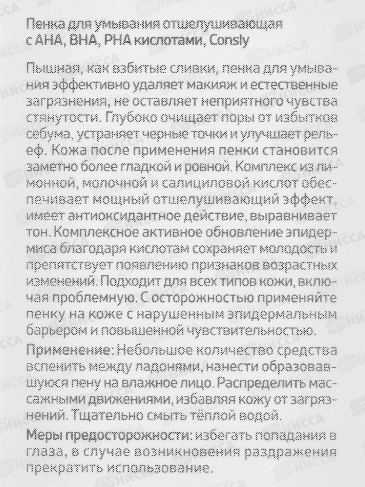 Consly Пенка для умывания отшелушивающая с АНА,ВНА,РНА кислот 120мл