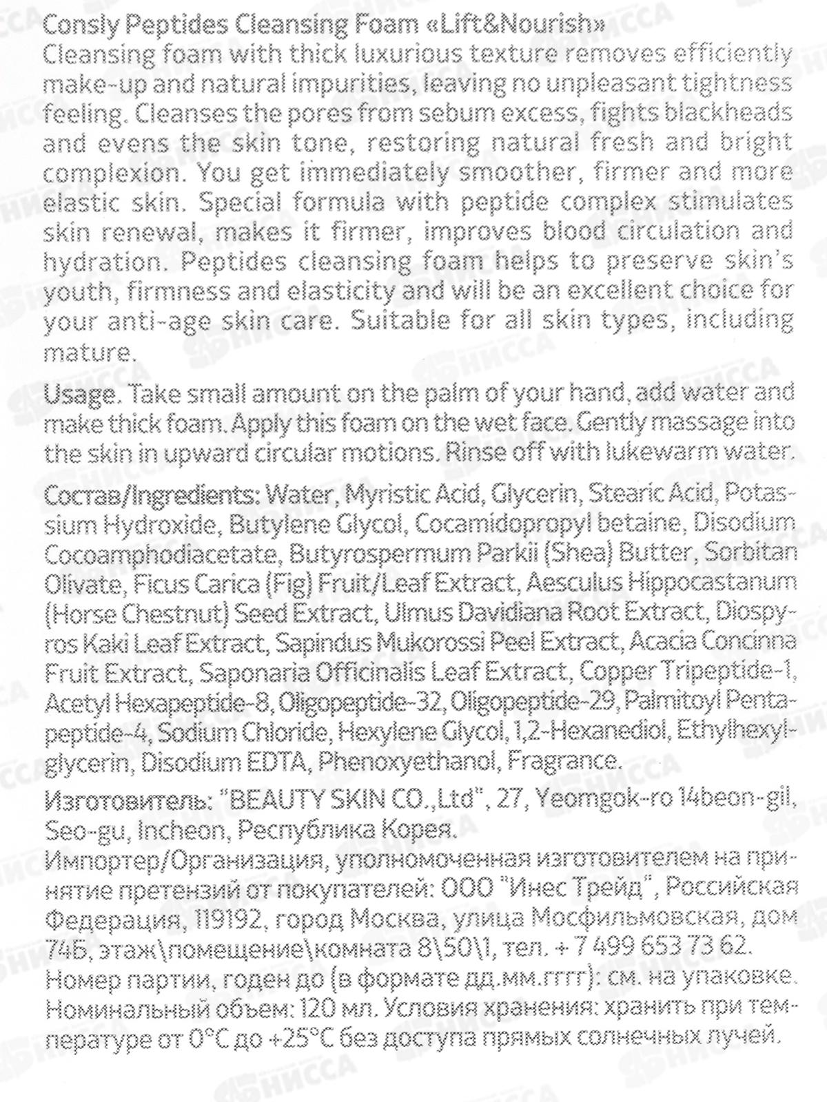Consly Пенка для умывания Укрепляющая с пептидами 120мл