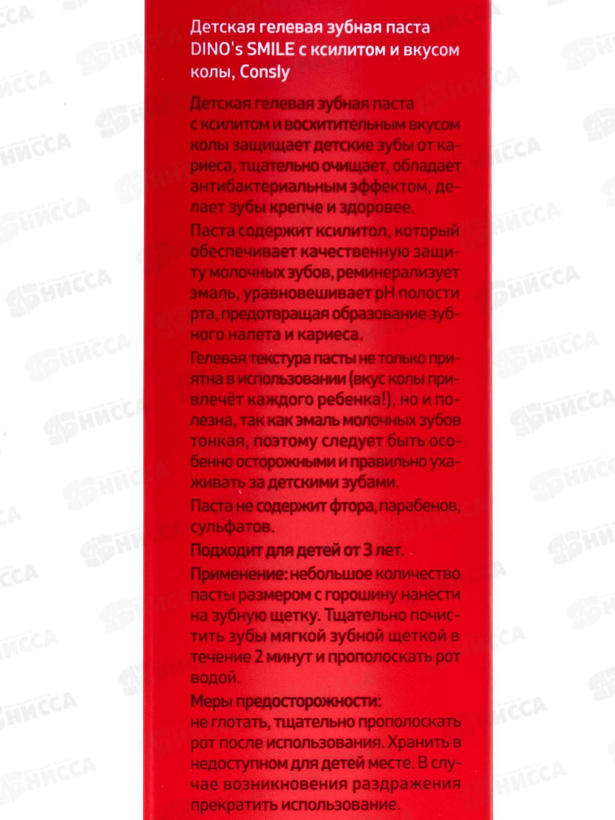 Consly Зубная паста гель Dino`s Smil дет с ксилитом и вкус колы 60г