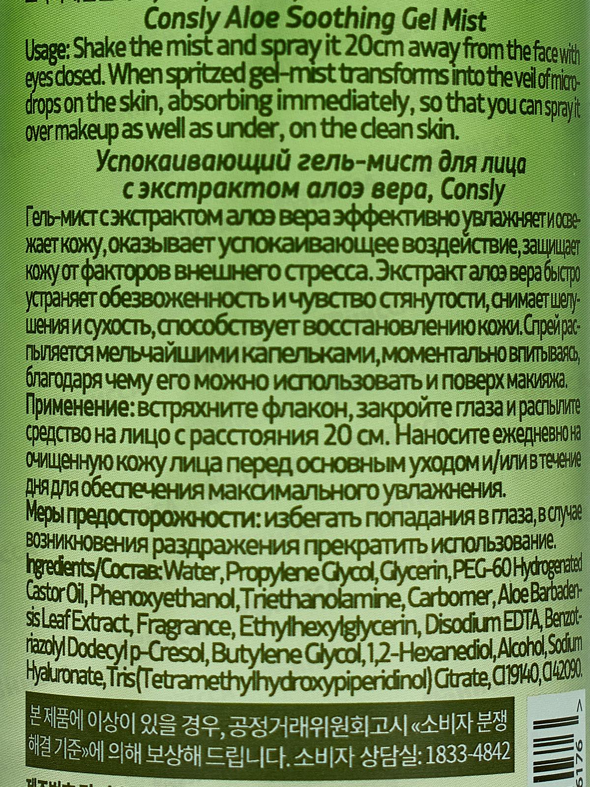 Consly Гель-мист Успокаивающий для лица с экстрактом алоэ вера 120мл