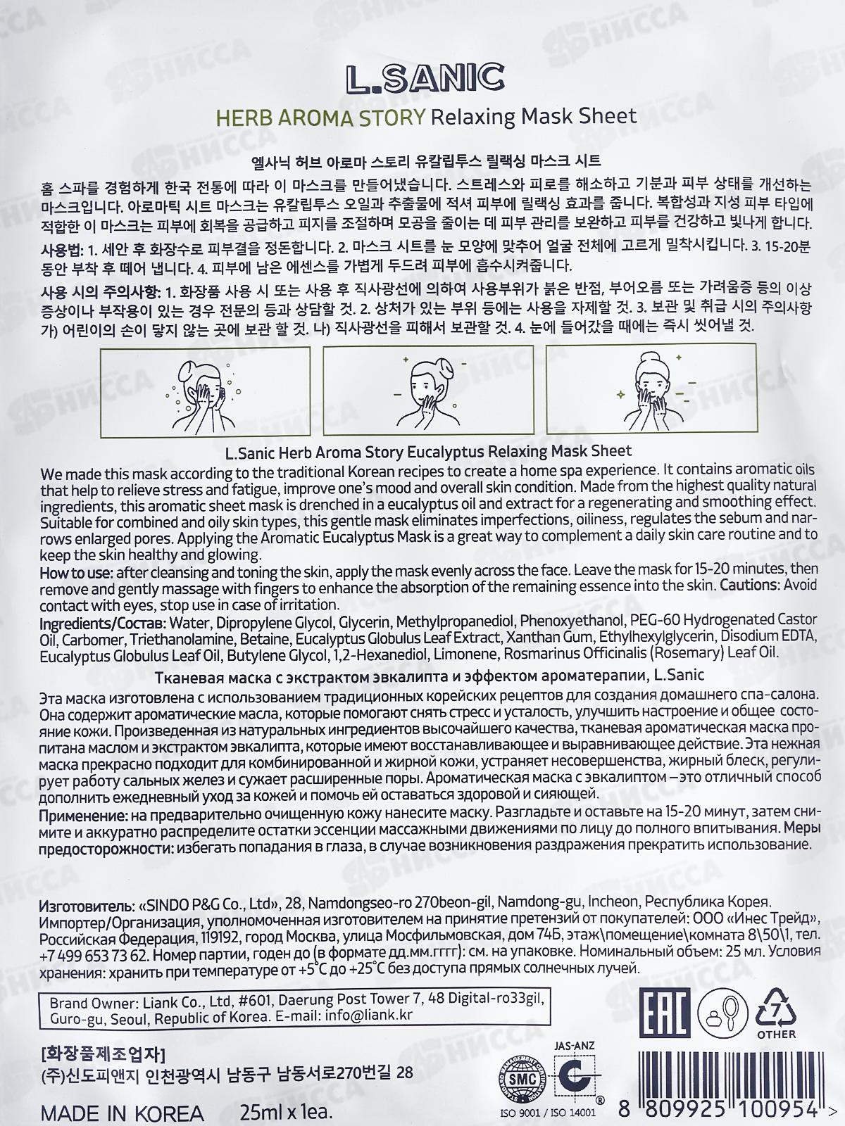 L.Sanic Маска тканевая H.A.A. с экстр эвкалипта и эффект ароматер 25мл