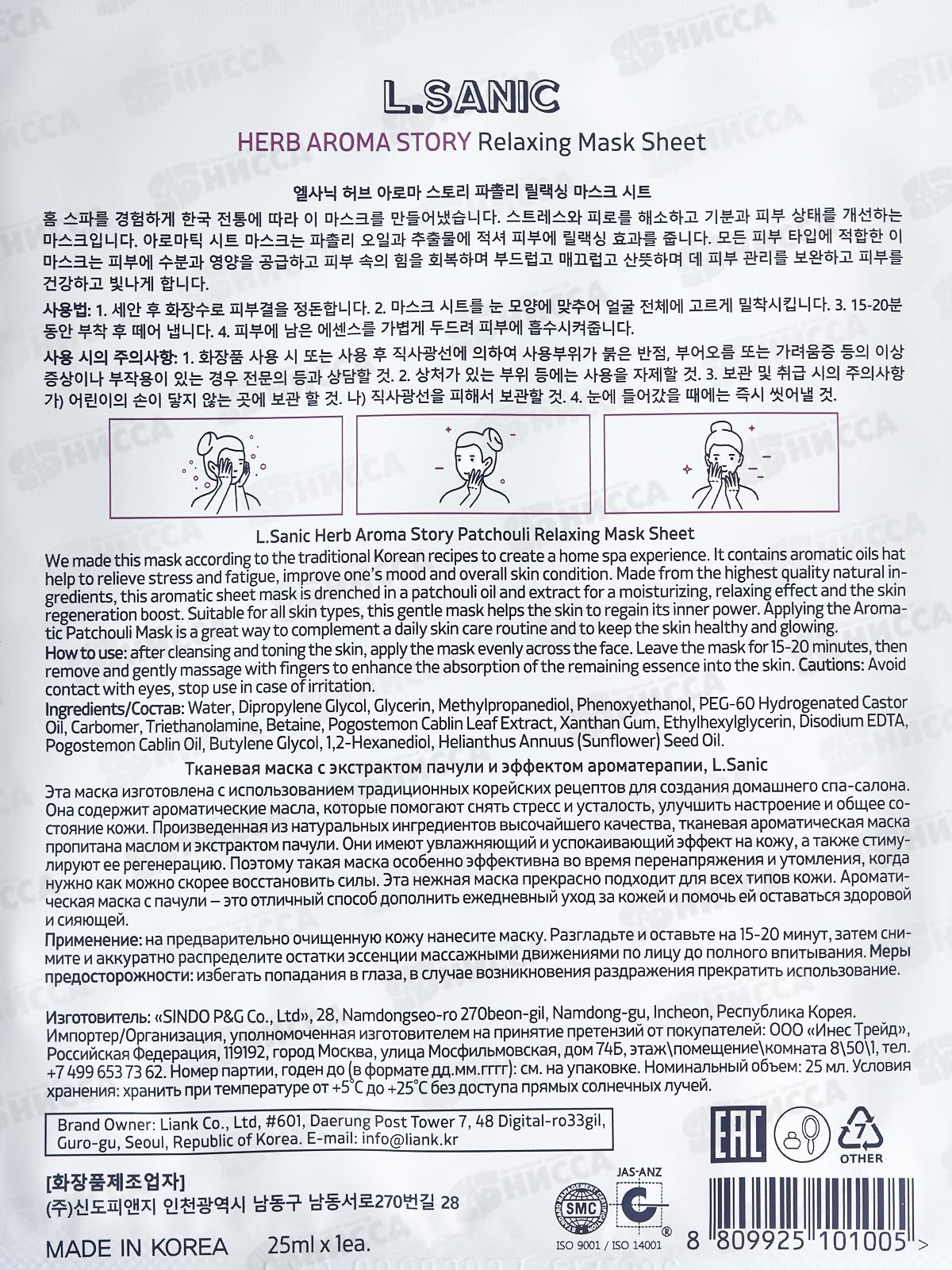 L.Sanic Маска тканевая H.A.A. с экстр пачули и эффект ароматер 25мл
