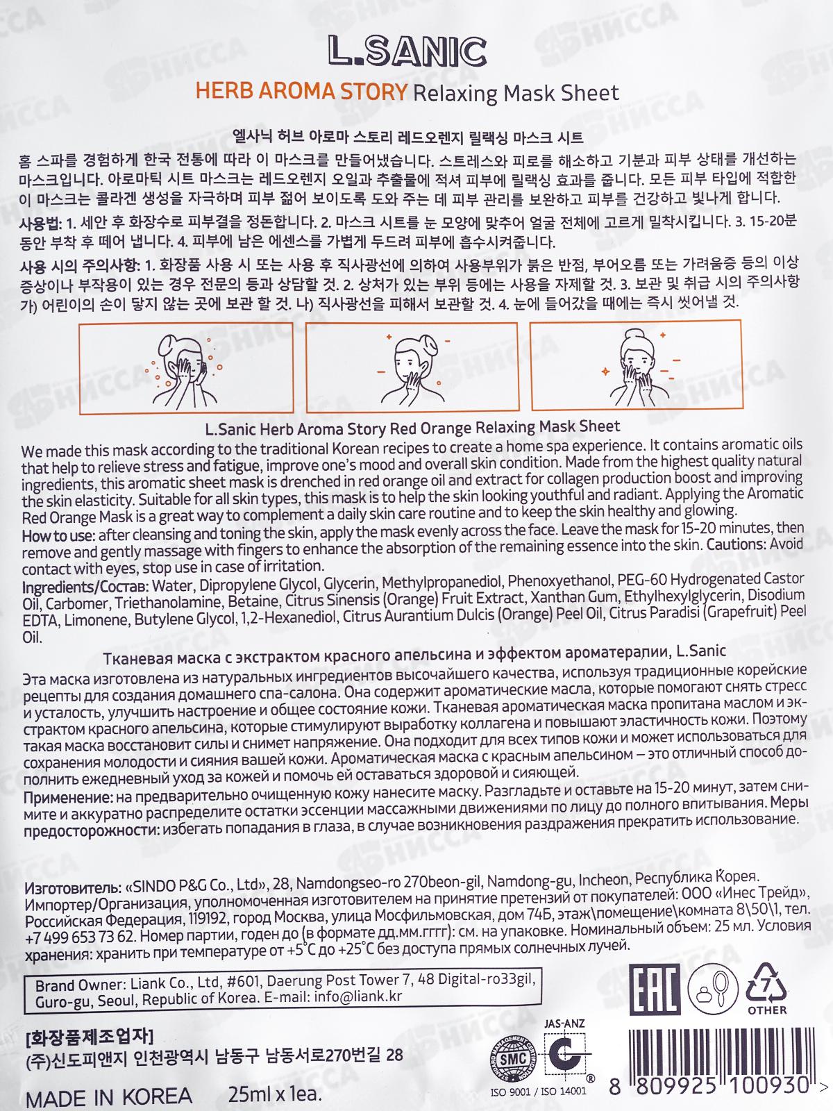 L.Sanic Маска тканевая H.A.A. с экстр апельсина и эффект ароматер 25мл