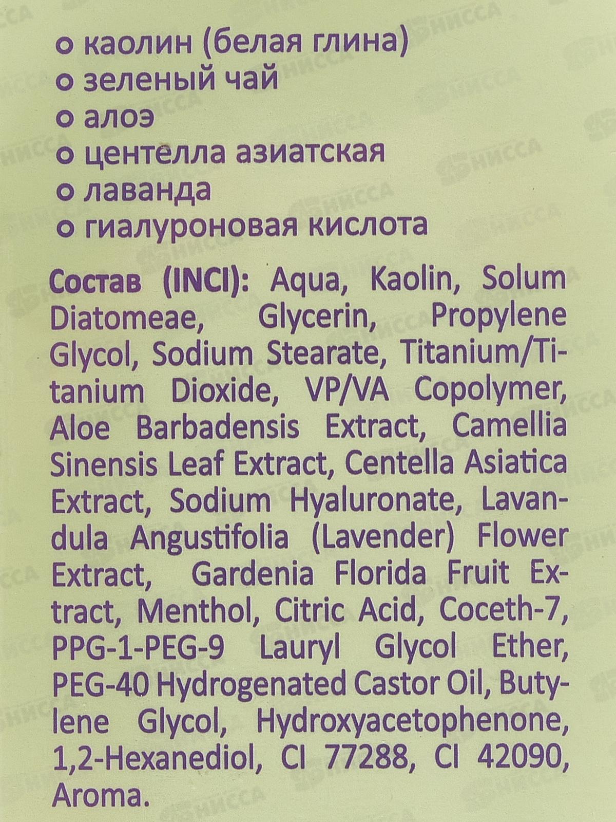 Активные компоненты: экстракт зеленого чая, гиалуроновая кислота, каолин
