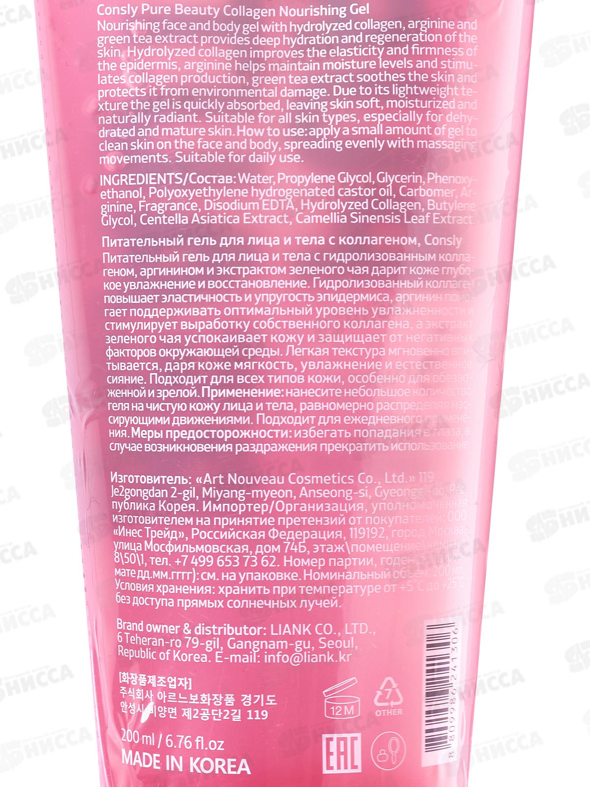 Consly Гель Питательный для лица и тела с коллагеном 200мл