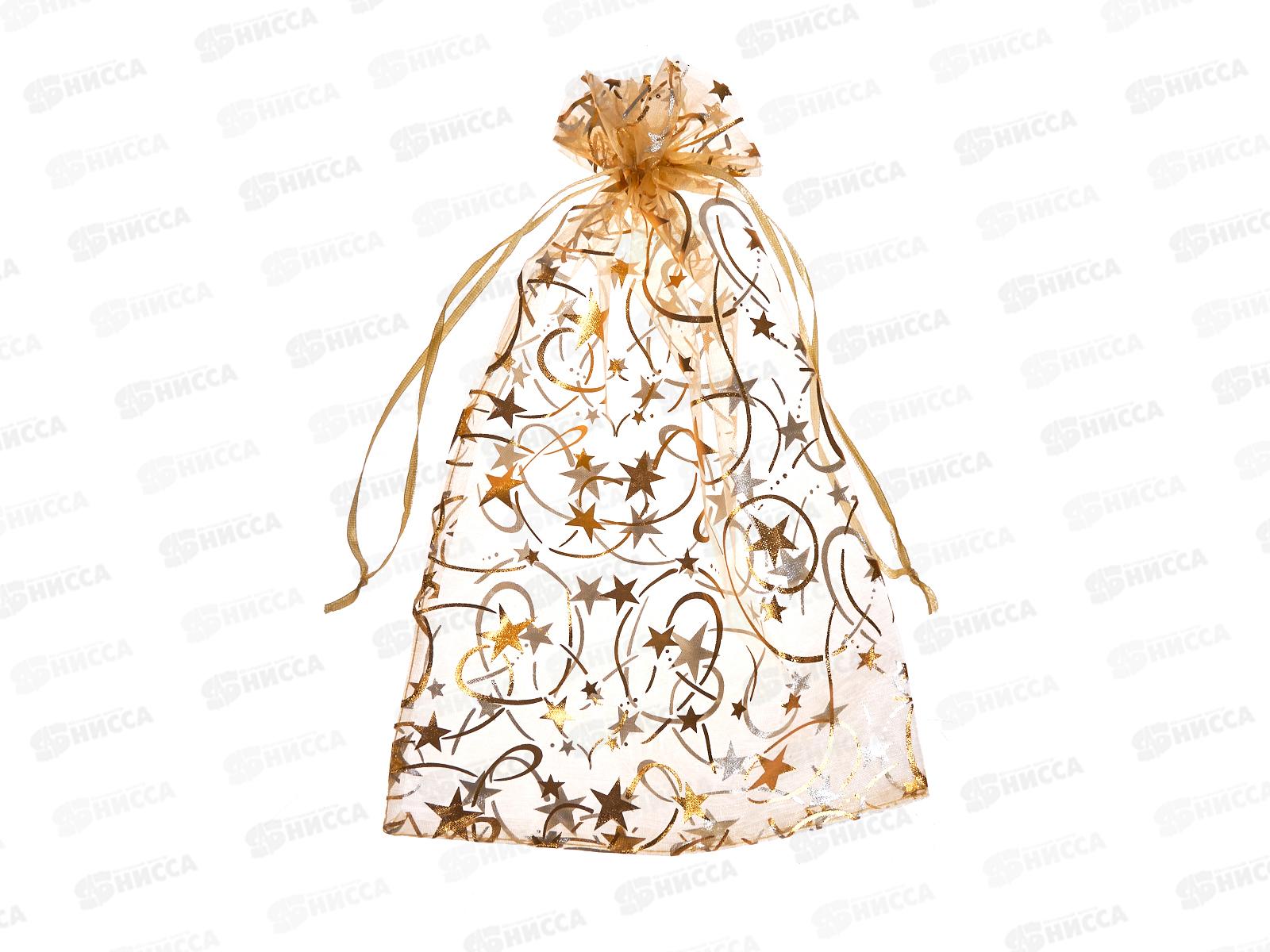 Мешочек из органзы 300*200мм Новый Год Золотой микс 5 дизайнов *50/250