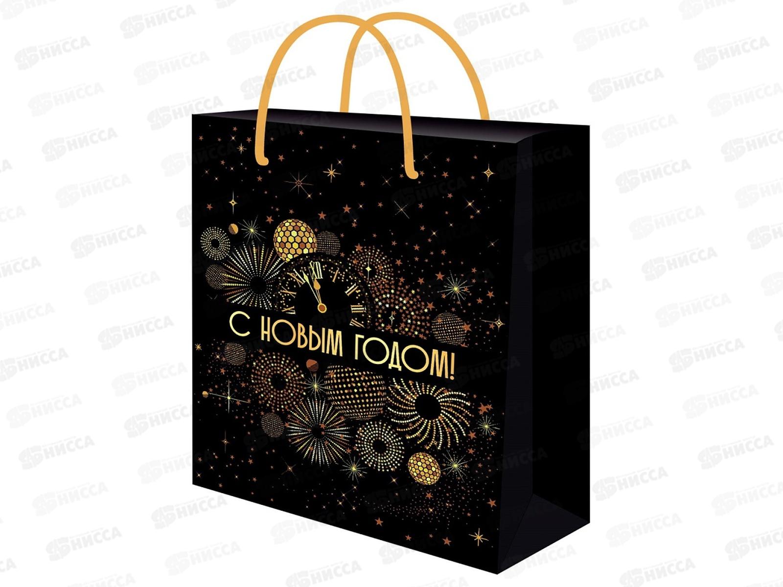 Пакет подарочный MI 26,4х32,7х8см (L) Черный новогодний ППК-2357*12