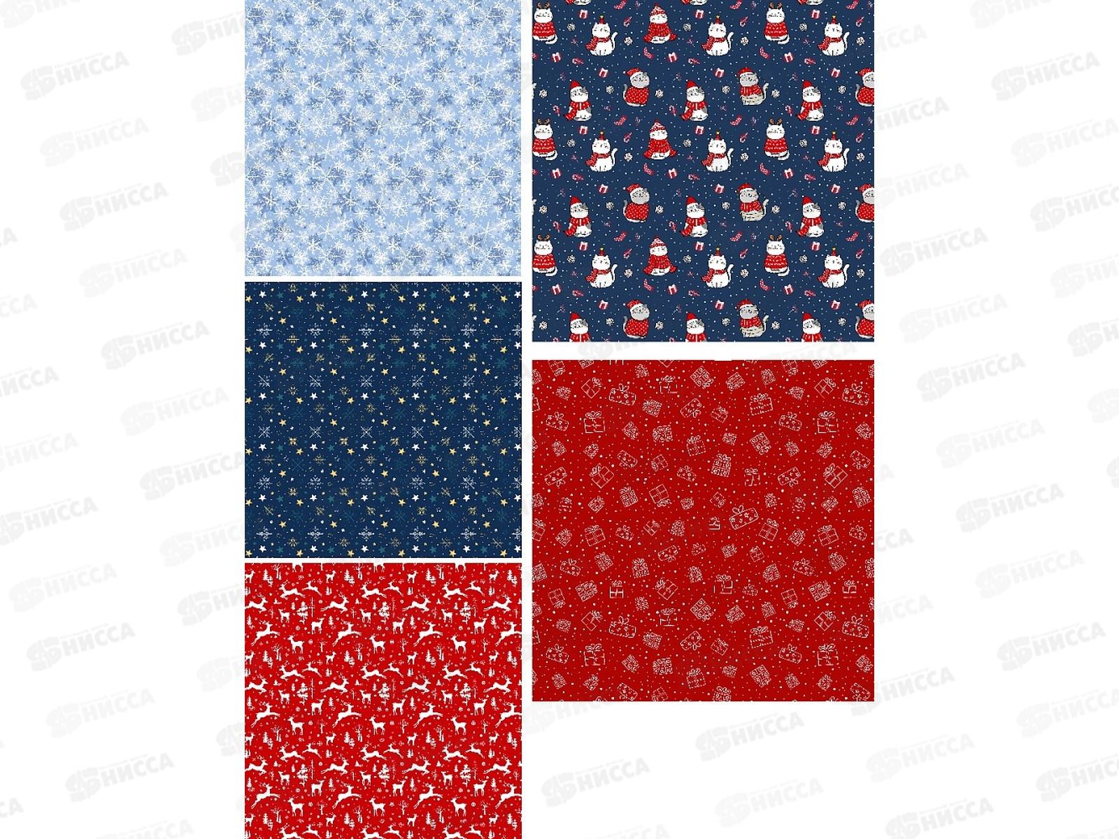 Бумага упаковочная MI Зимний вайб (1л,70*100см,5диз в ш/б) УБ-6148