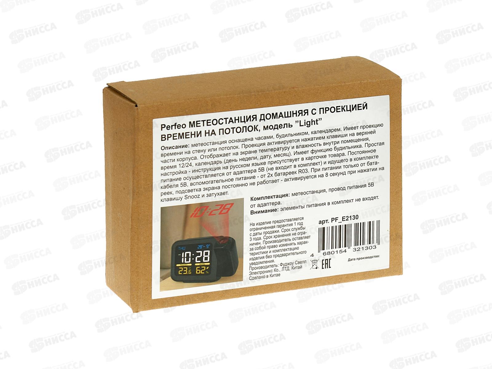 Часы-метеостанция Perfeo Light с проекцией времени, температура, влажность, PF_E2130