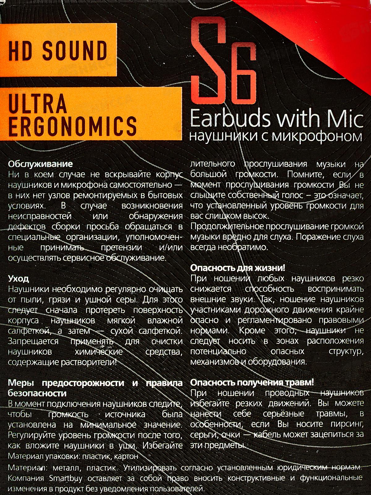 Гарнитура SmartBuy S6, черная, в коробке, SBH-201K *60