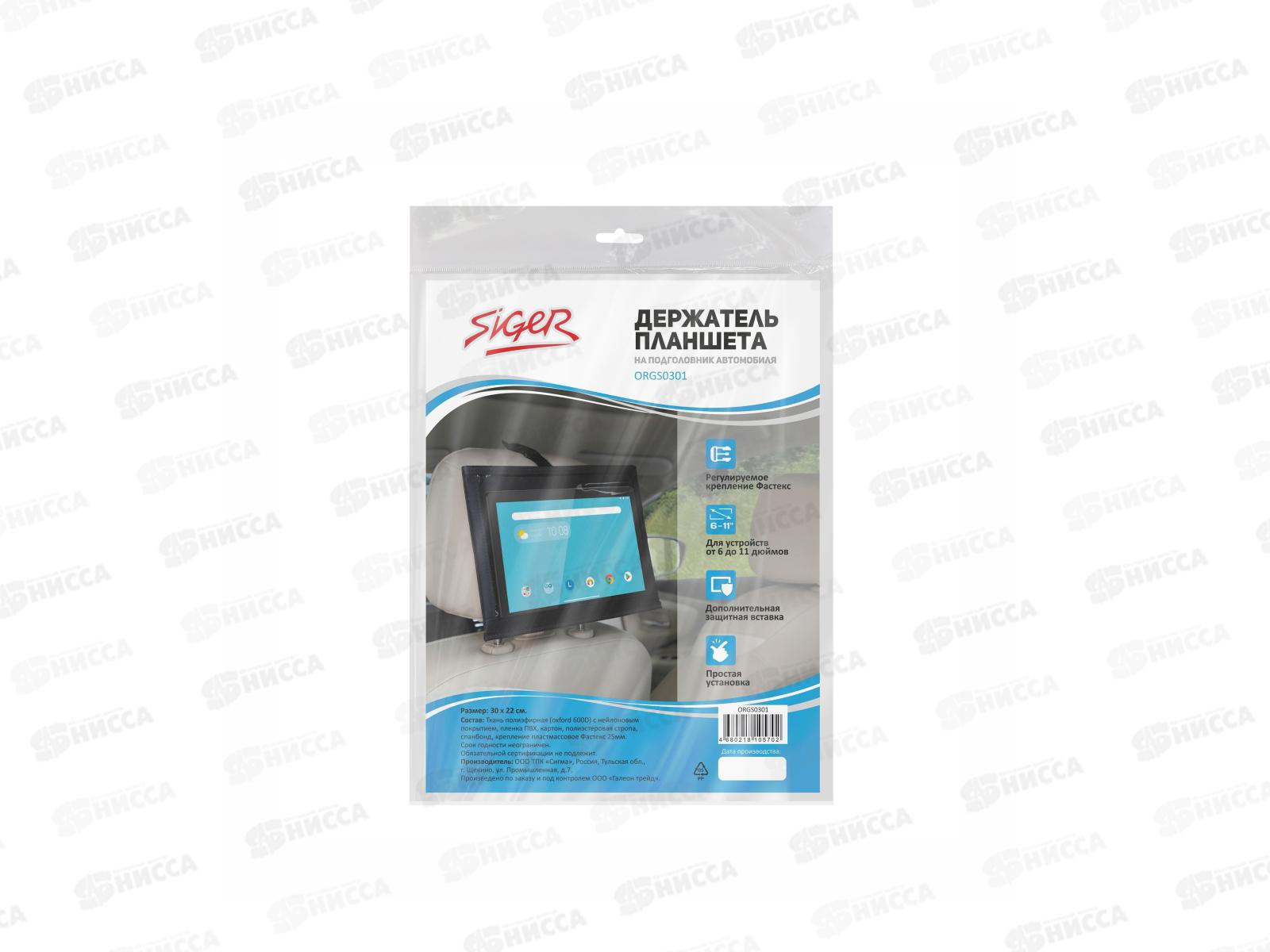 Держатель планшета Siger на подголовник авто тканевый 0301