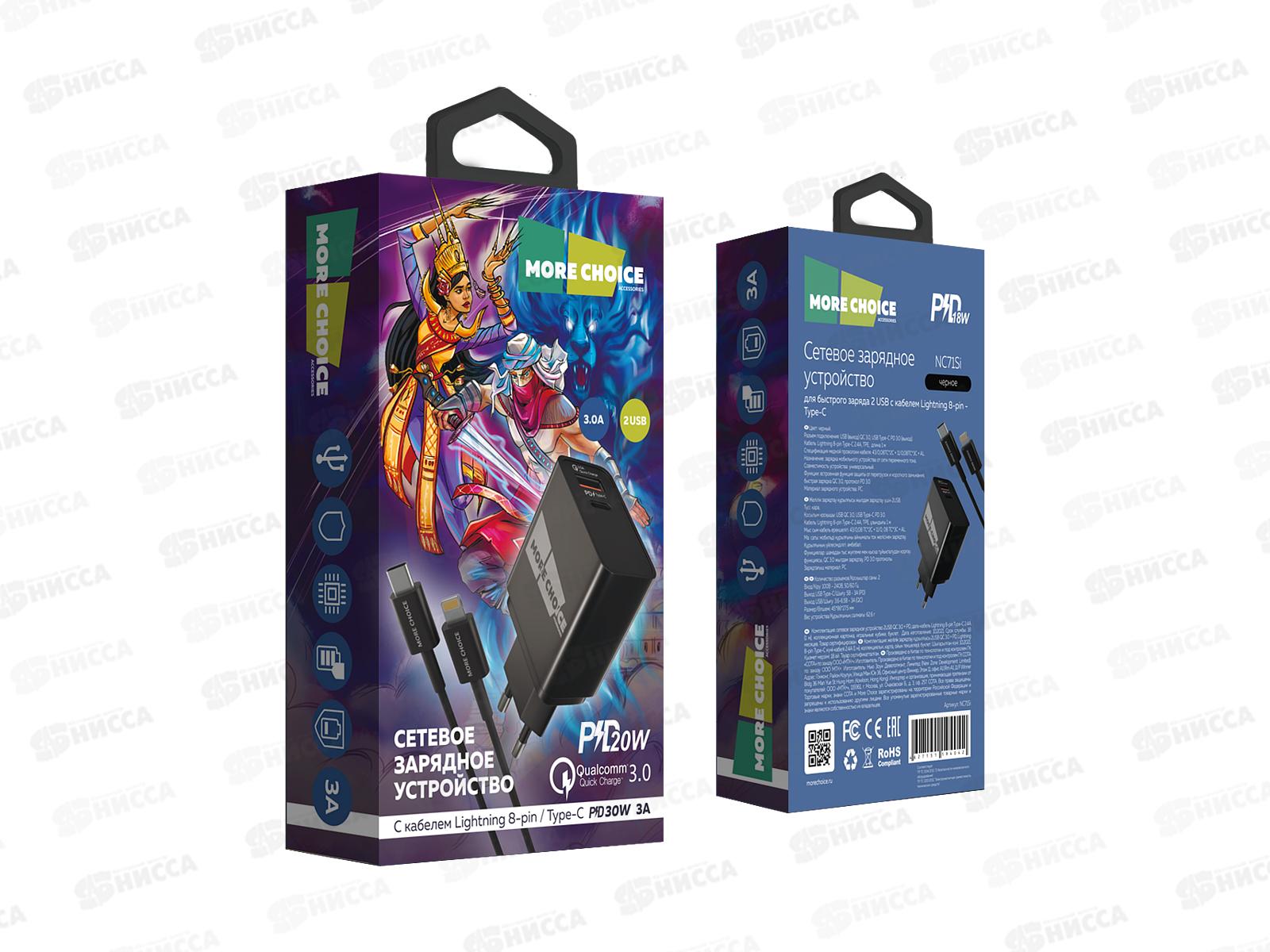 Зарядное устройство сетевое Smart 2USB 3.0A PD 20W+QC3.0 быстрая зарядка для Lighting Type-C More choice NC71Si черный *19