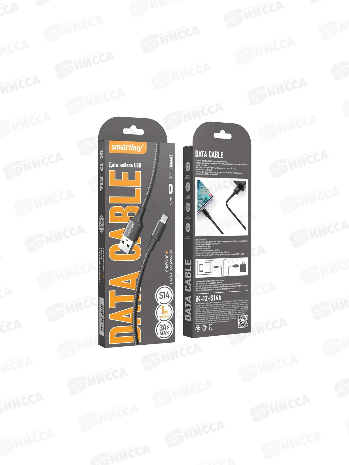 Кабель S14 MicroUSB д/зарядки,черный, 3А, 2м, Smartbuy (iK-12-S14b)