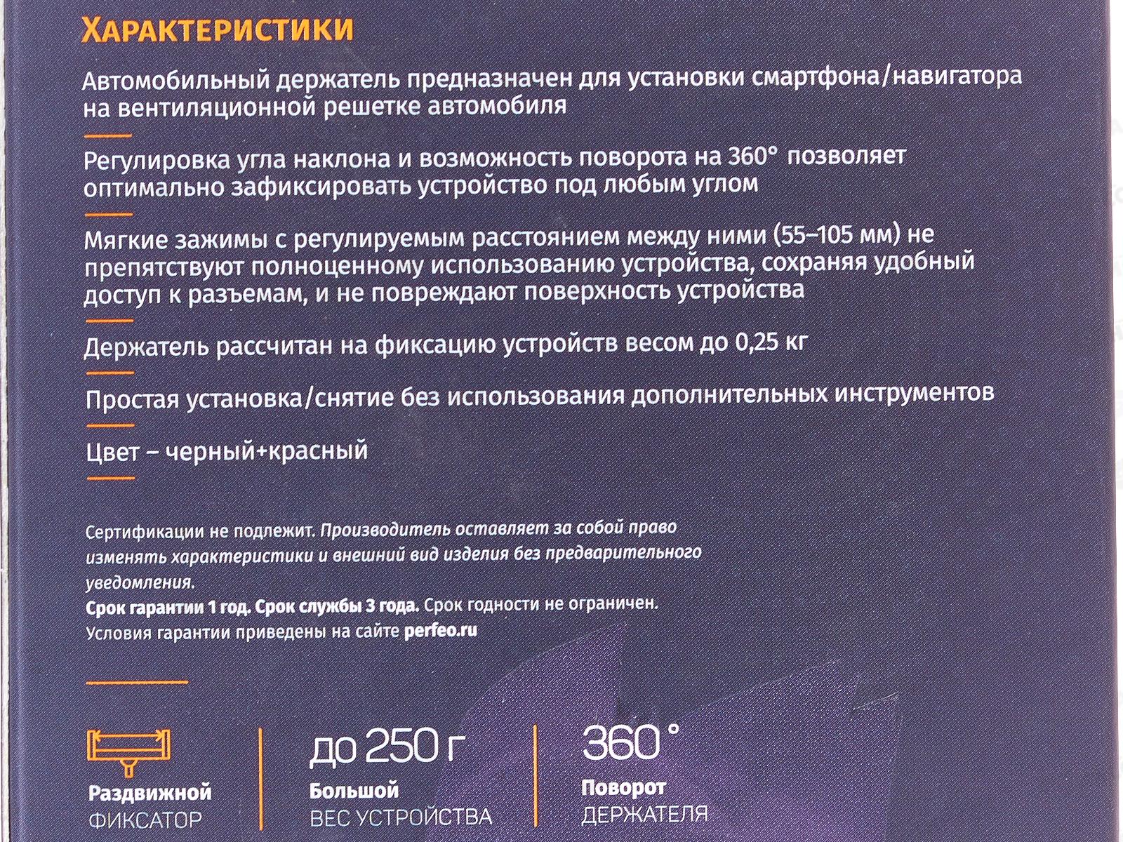 Держатель Perfeo-541, д/смартфона на воздуховод, PF_A4100