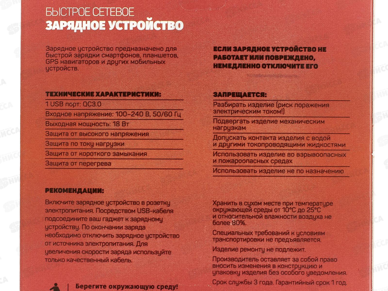 Зарядное устройство PERFEO I4659 с разъемом USB, QC3.0, 18вт, белый