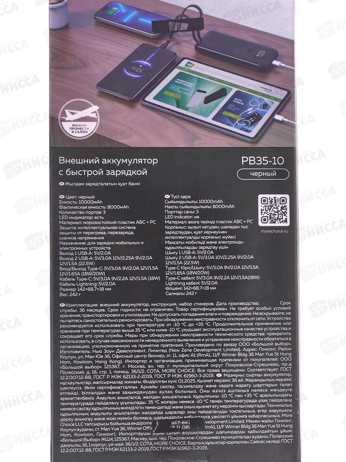 Зарядное устройство (Пауэрбанк) 2USB+1Type-C 10000mAhPB35-10 Black