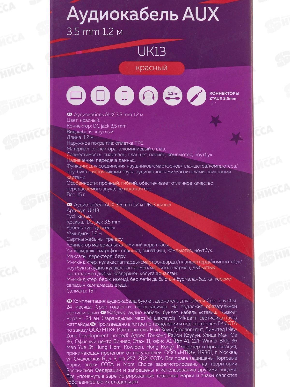 Аудиокабель AUX 3,5mm 1,2м More choice UK13 Red