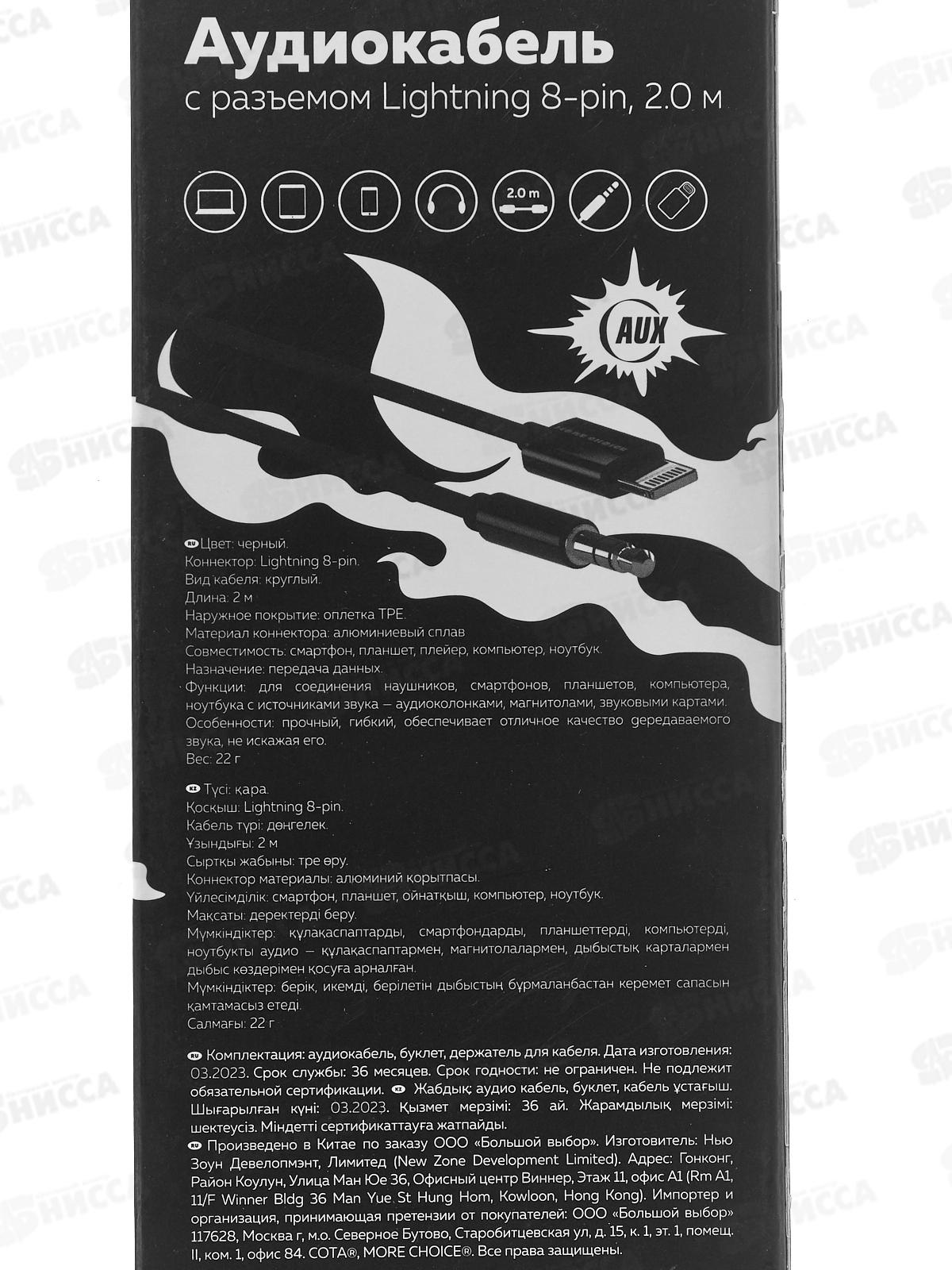 Тип разъема: AUX 3,5 мм/Lightning 8-pin