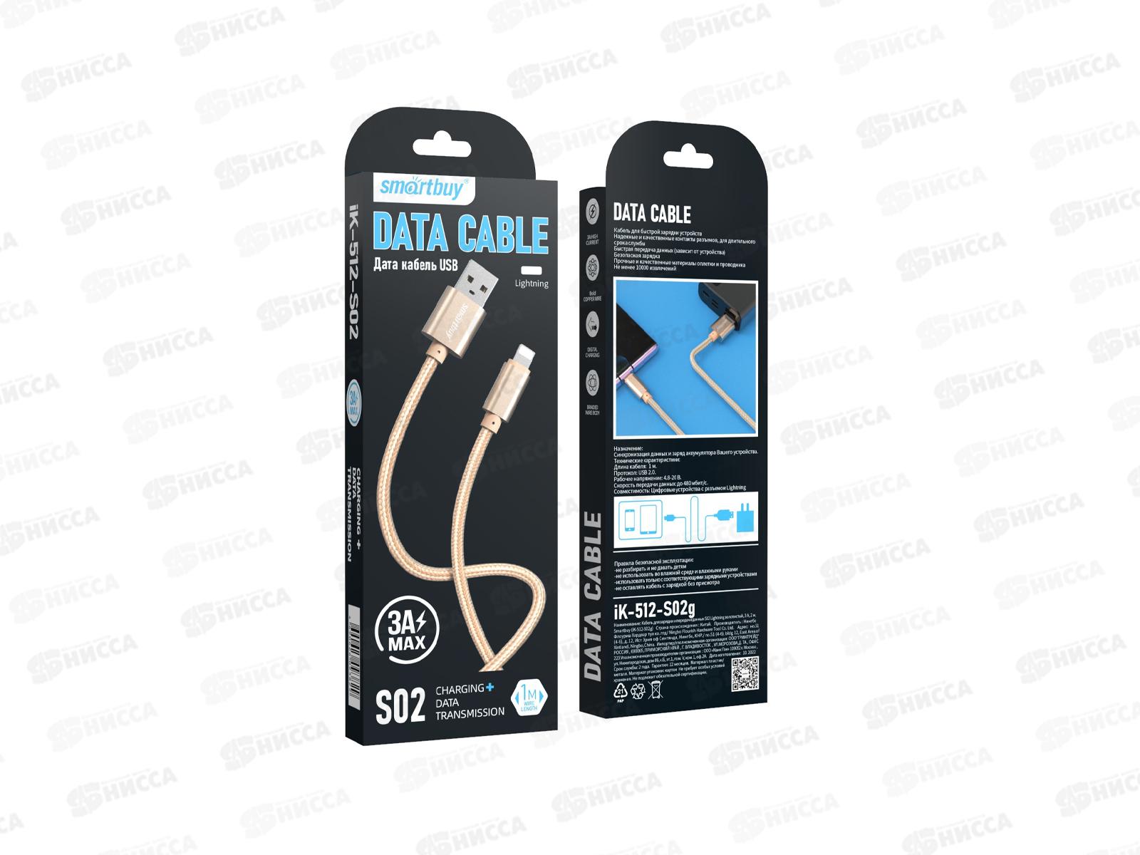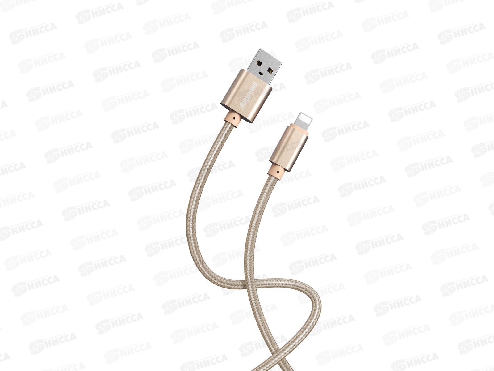 Кабель для зарядки и передачи данных S02 Lightning золотистый, 3А, 1м, Smartbuy iK-512-S02g